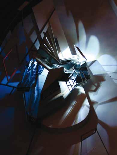 and vegetarianism within contemporary Chinese culture. The building provides an artificial urban well with soya allotments, tofu production and cookery school sited within ‘798’ Art and Media district in the north-east suburb of Beijing. Image shows sectional model with light study.