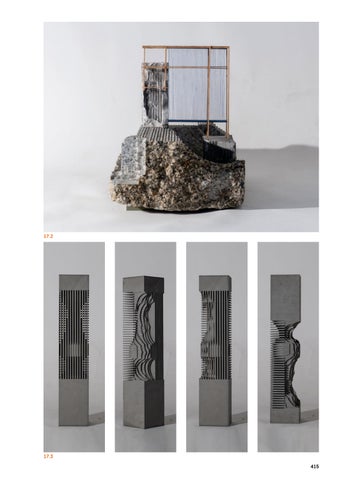 17.6 Ying Tung (Ruby) Ng, Y4 ‘Casting, Imprinting and Constructing’. The project explores material contingencies through the construction of physical models. The collection of models demonstrates the experimentation process of a new casting method that uses an elastic membrane to enhance material performance and capture the expression of materials as they transition from a liquid to a solid state.