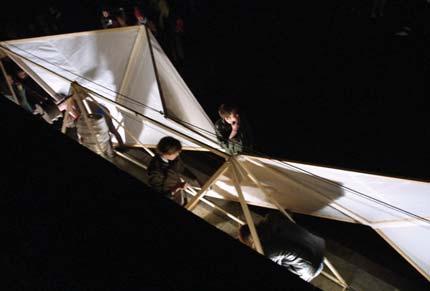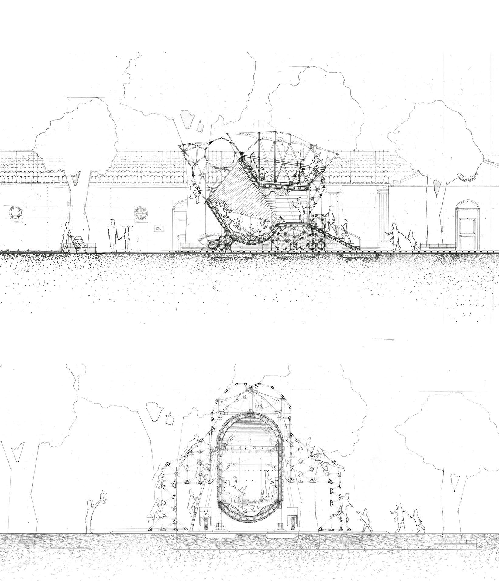 uses of materials, and ultimately with the actual processes of making and crafting. Installations are not buildings as such they should be understood as temporary structures adjusting a given place. In order to adjust a place you need to read, understand and interpret it from the social, urban, historical and cultural context. This context is the datum and reference between ideas and the crafting.