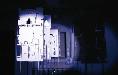 using a wardrobe. From below, it immersed the user through a dialogue of movements in Soane’s stairwell. These subsequently influenced the path of views for the upper user; possibly even withdrawing the views from their control. This project set out to create a unique experience that highlights the features of the stairwell as Soane intended, whilst also allowing viewpoints to be manipulated from the basement of the stairwell. At this level glimpses through casted fragments revealed shafts of light from the above skylight; creating a series of views obscured by the pockets within the structured frame.
