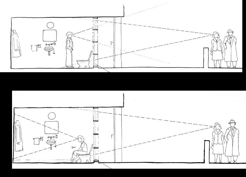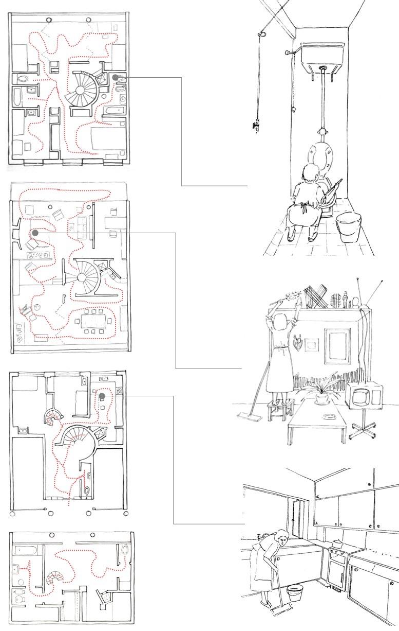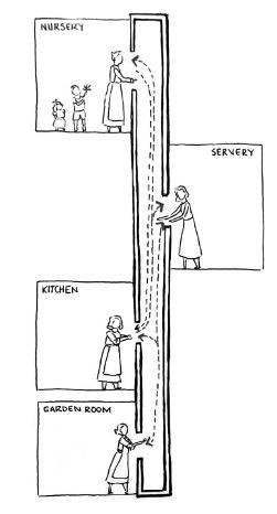 Claudia Vargas Franco, diagram illustrating how the dumbwaiter facilitates the vertical circulation of objects, maintaining the separation of bodies within the house.