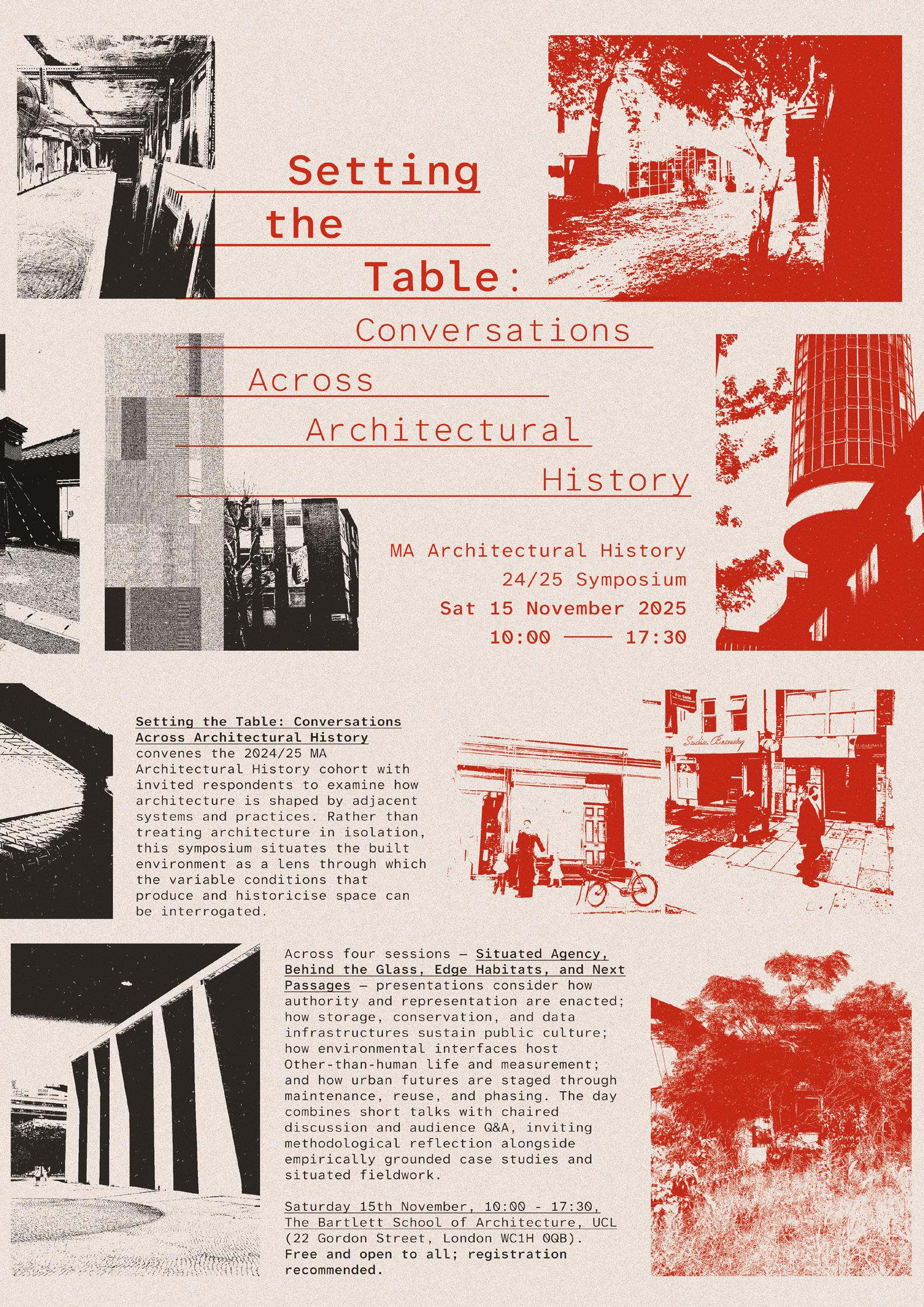 Alongside this publication and accompanying exhibition, Setting the Table was presented as a research symposium at the Bartlett School of Architecture on 15th November 2025.