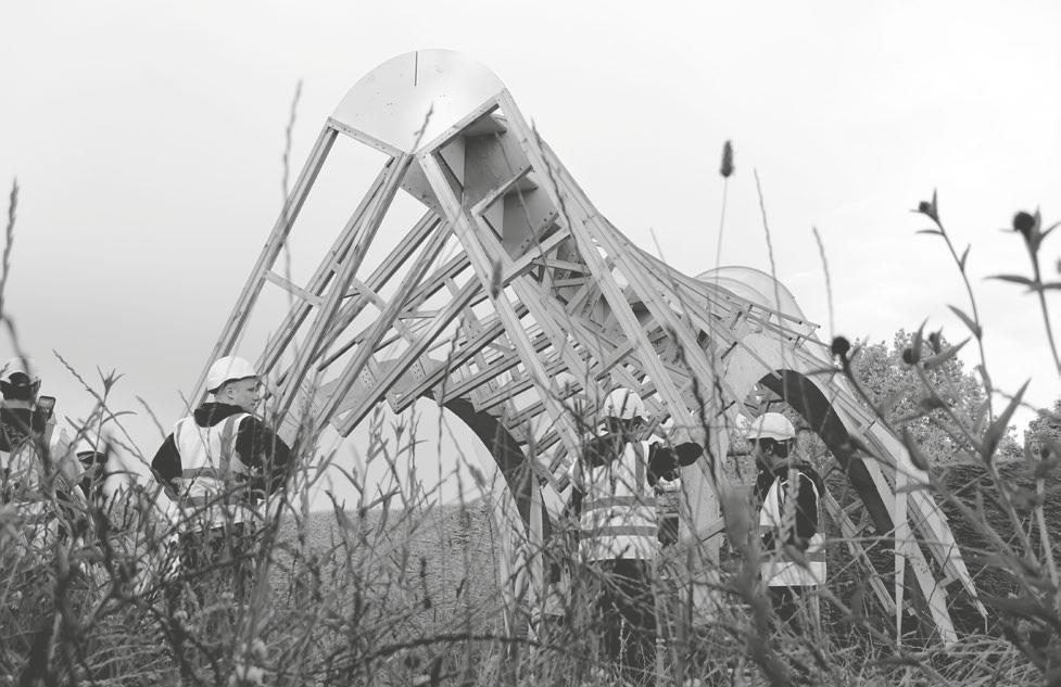 The cohort this year designed, manufactured and delivered a twisted box twin arch to support the ‘Arkhive’ pavilion originally fabricated by the previous cohort (2023–24). Working collectively, the students developed a structural solution that not only extended the life and adaptability of the pavilion but also demonstrated the programme’s commitment to iterative learning and cumulative innovation. Their work culminated in the successful delivery and installation of the structure in St Andrews Botanic Garden, Scotland.