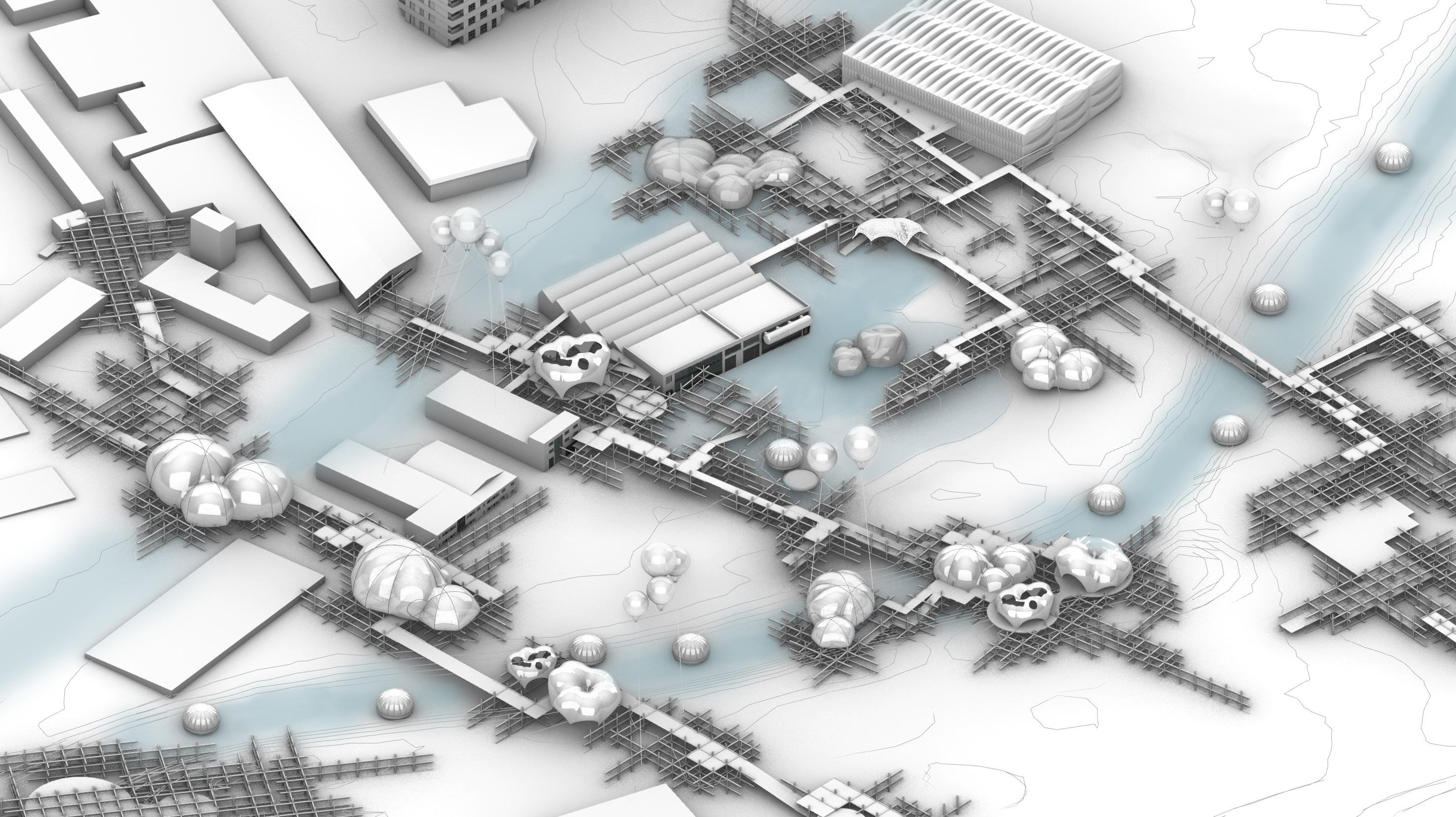 As climate change accelerates, the increasing frequency and severity of flooding event necessitate innovative and adaptable urban design solutions. Flooding poses a huge threat to cities, endangering lives, disrupting communities and causing extensive economic damage. Traditional infrastructure, often rigid and unyielding, struggles to cope with dynamic nature of our changing environment. The project seeks to provocatively address these imminent challenges by envisioning resilient urban landscapes. Public spaces and infrastructure are reimagined to foster social interaction and community resilience and simultaneously biodiversity hotspots, where nature can reclaim its part in the urban fabric aim at creating a harmonious co-existence between human and non-human that not only withstands but thrives amidst the challenges posed by rising water levels.
