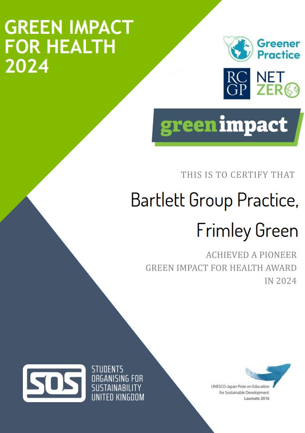 By aligning with the principles of the Green Impact for Health Toolkit, we aim to play a small but vital role in addressing the challenges of climate change while continuing to prioritise the health and well-being of our patients and community.