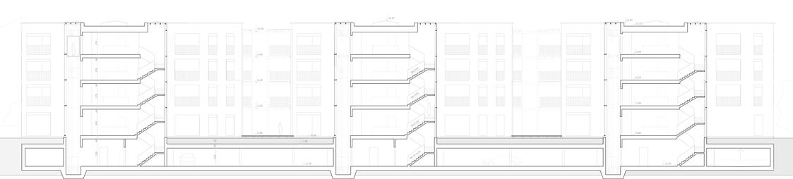Internally, the building maximizes natural light with numerous skylights and glazings in the staircase and elevator shafts, illuminating both the large flats and common areas.