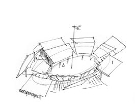 Three key walkable axes define the design: a central park with the iconic Park Pavilion,a commercial axis using silos as visual dominants.and a recreational axis enclosed by an office tower building.