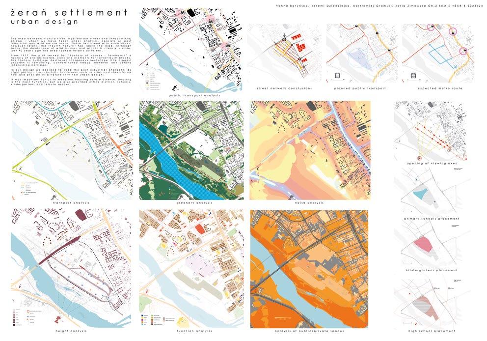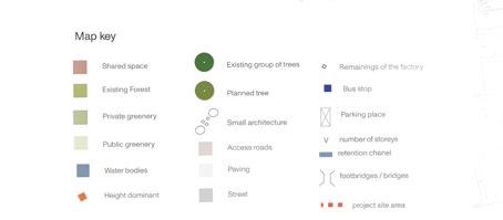 Located at a gateway to the new district the plan proposes a mixture of low rise - and high density which brings back the city’s prularism and individualism and opposes past homogenity. Factory reamianings are underlined through important streets as landmarks.