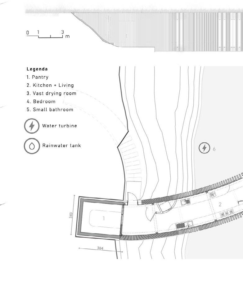The projects is a reinterpretation of the settlement's long tradition of inhabiting in close contact with nature - by dislimining the perimiter of a house and inducing exposure of its inhabitants to climatic factors.