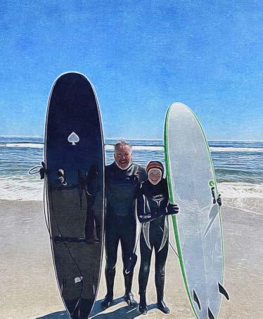 James and his niece enjoy a favorite pastime— hanging ten at the beach.