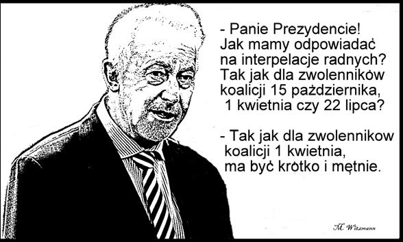Niestety smutne doświadczenia początku kadencji wskazują, że drugiej strony nie stać na kompromis, nawet w sprawach które wydawałyby się ponad podziałami. Dyscyplina w klubie WW łamie kręgosłupy tym, którzy może myślą podobnie jak my, ale są uwikłani i zależni wobec Prezydenta i całego aparatu Urzędu Miasta. Przykrym jest też sposób sprawowania władzy przez Prezydenta, który powinien reprezentować interes wszystkich mieszkańców, a realizuje swoje wizje, którymi znaczna część podatników jest już zmęczona, czym dała wyraz w wyborach. Pracując w wielu miejscach, zawsze