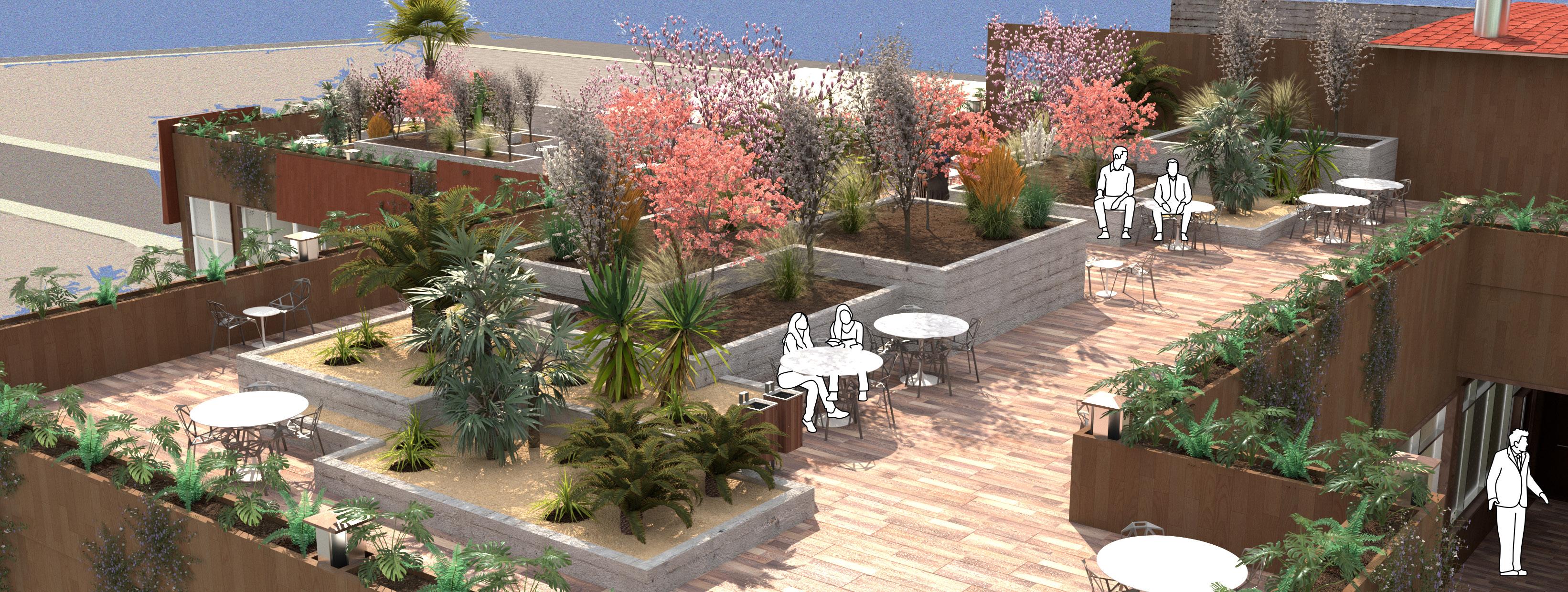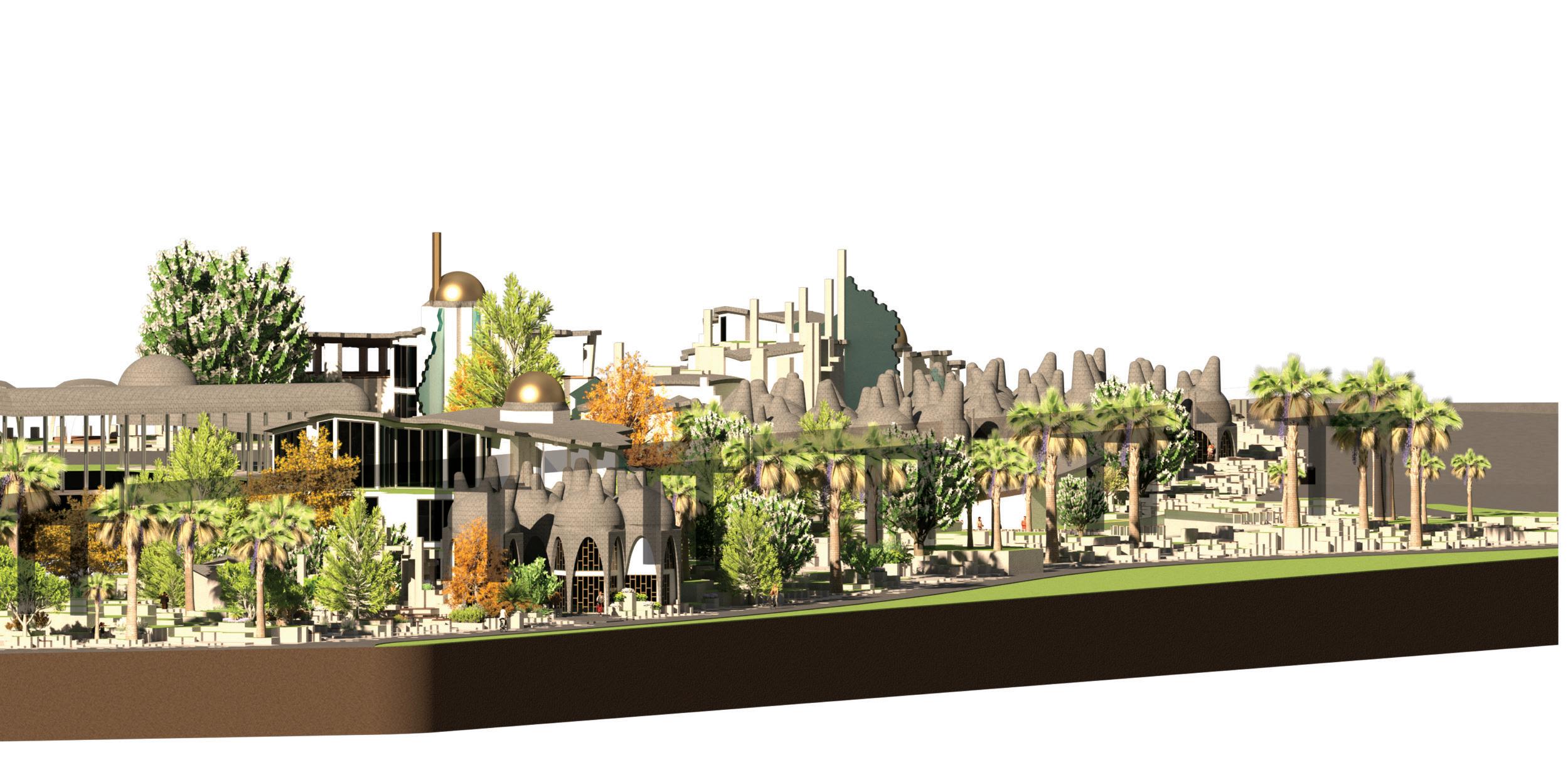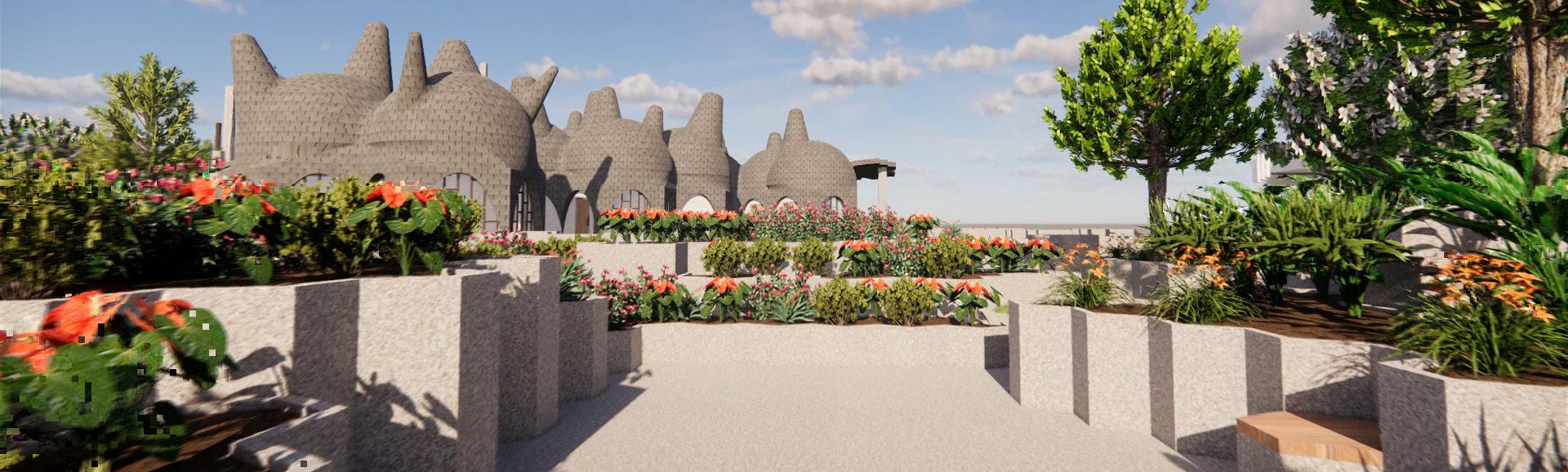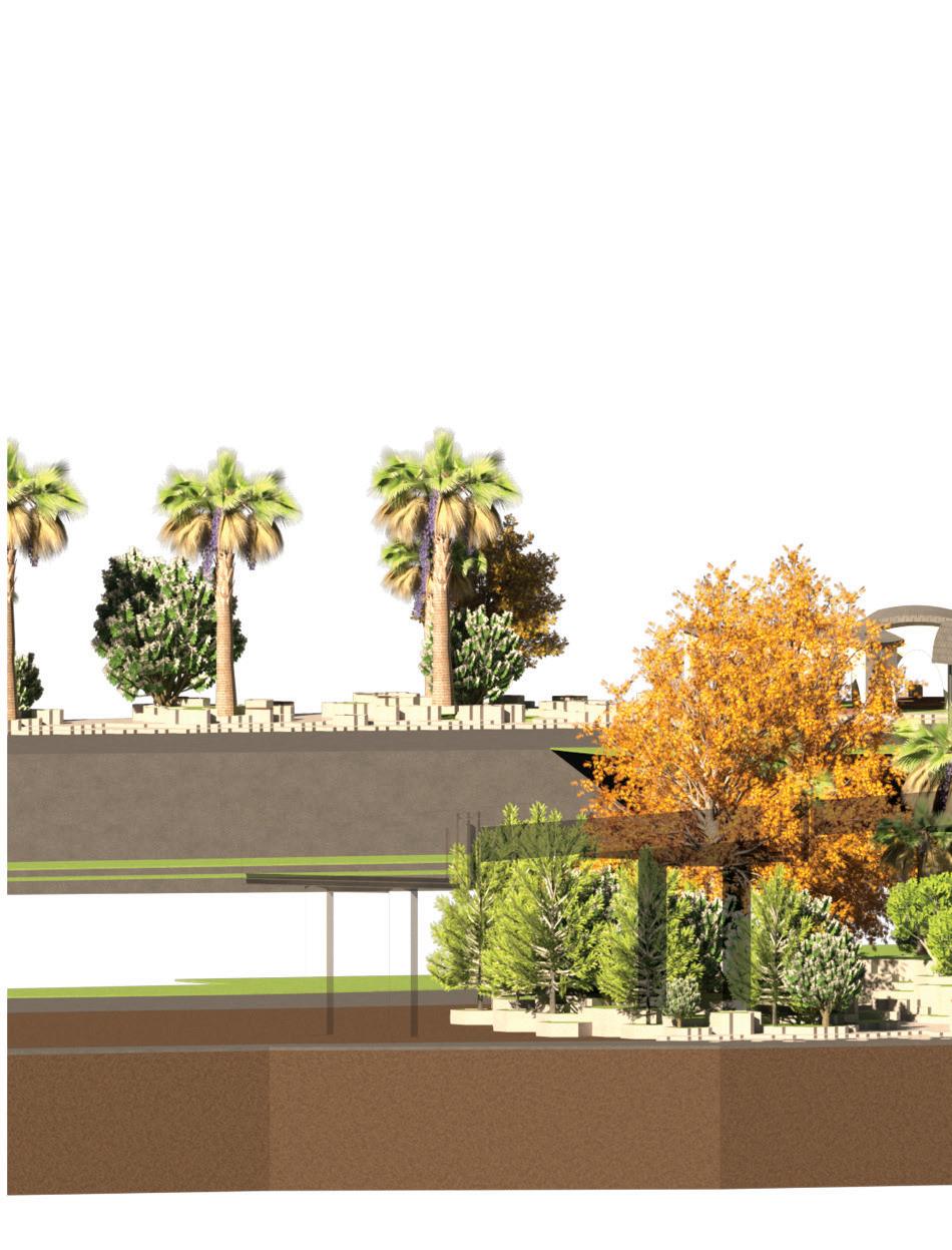 city. Further down is the peace garden, housing positive-ambiance plants such as lavender and wisteria. This garden acts as a place of rest and careful contemplation of design. The final garden represents a possible future. A succulent garden demonstrates resiliency and adaptability even in the harshest environments, something that is absolutely necessary in an era of increasing extreme weather events and mass climate change.
