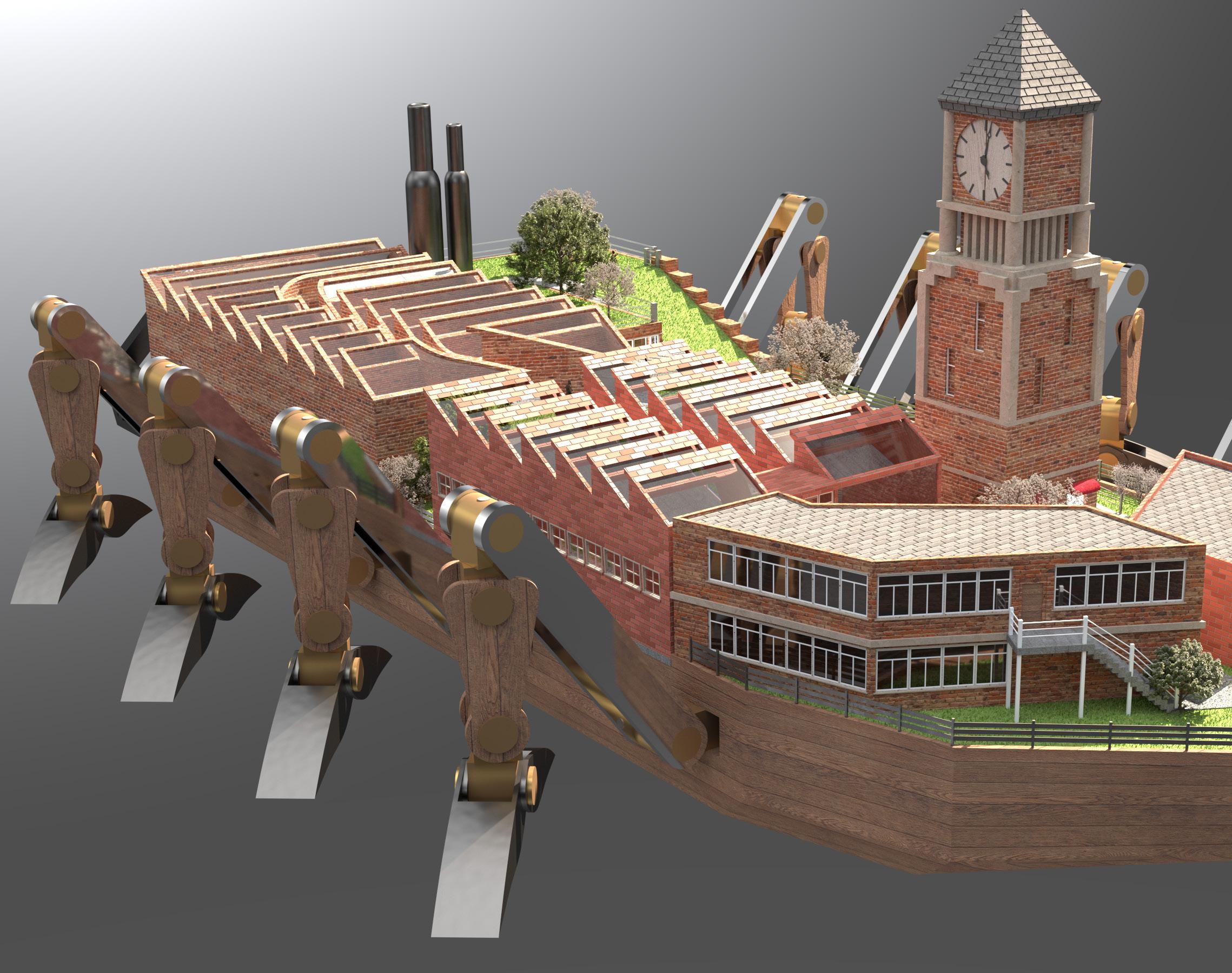 activate space for a festival that would take place in North Hill, Akron. I created my festival to be about berries, One of Ohio’s only natural fruit families. This fit with both the historic theming and the agricultural aspects of the program. During the off season the building gently moves around the city but as the festival takes place it remains in place and a county fair is put up around it.