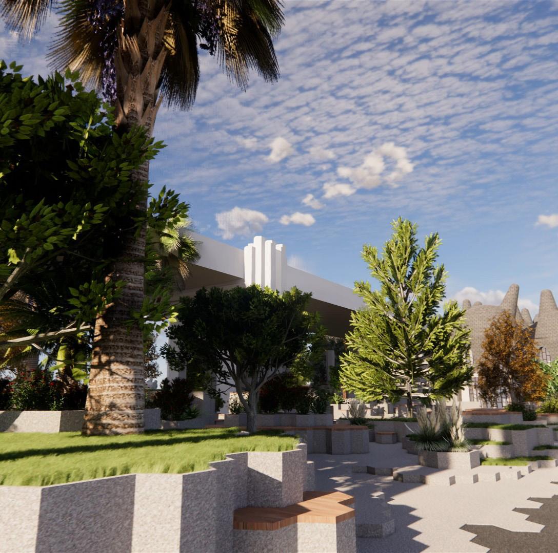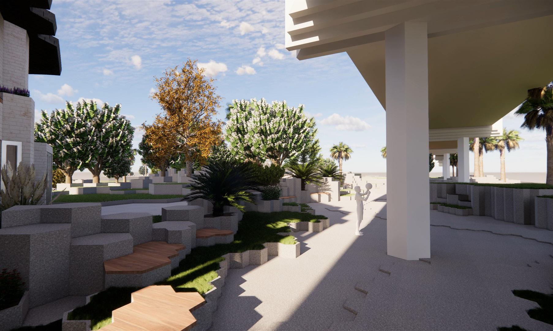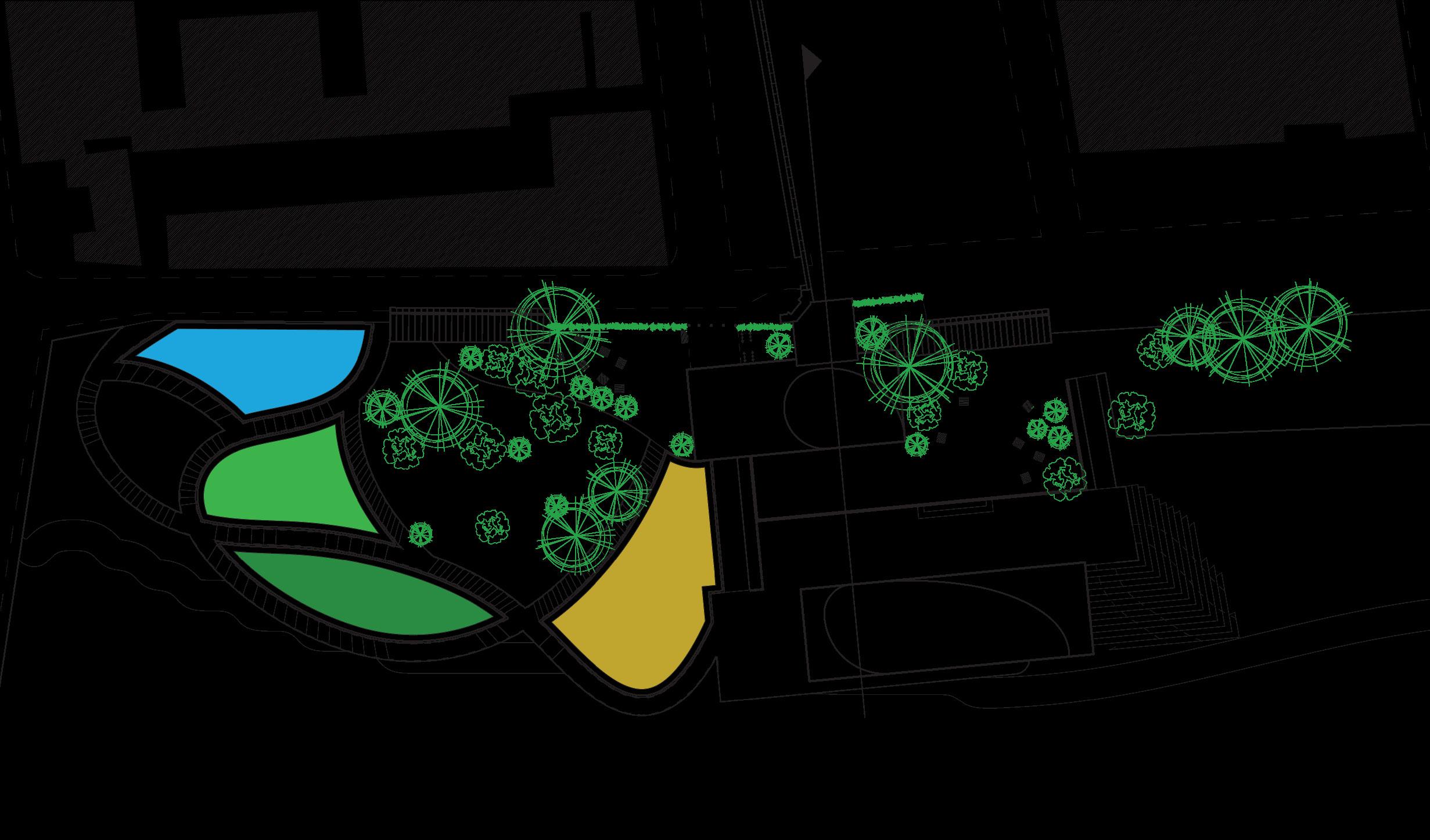 Gardens and fields populate the design, creating an ecologically sound oasis of life within a concrete jungle. The two main groups of gardens include areas of landscaped natural vegetation, used at the highest frequency,and the rainbow gardens, which are only employed in a dedicated area within the center of the site. As the name suggests, the rainbow gardens are a collection of flower beds each sharing a color. However, while all the plants share color characteristics they hail from all over the world, communicating the rich cultural diversity and beauty in Miami.