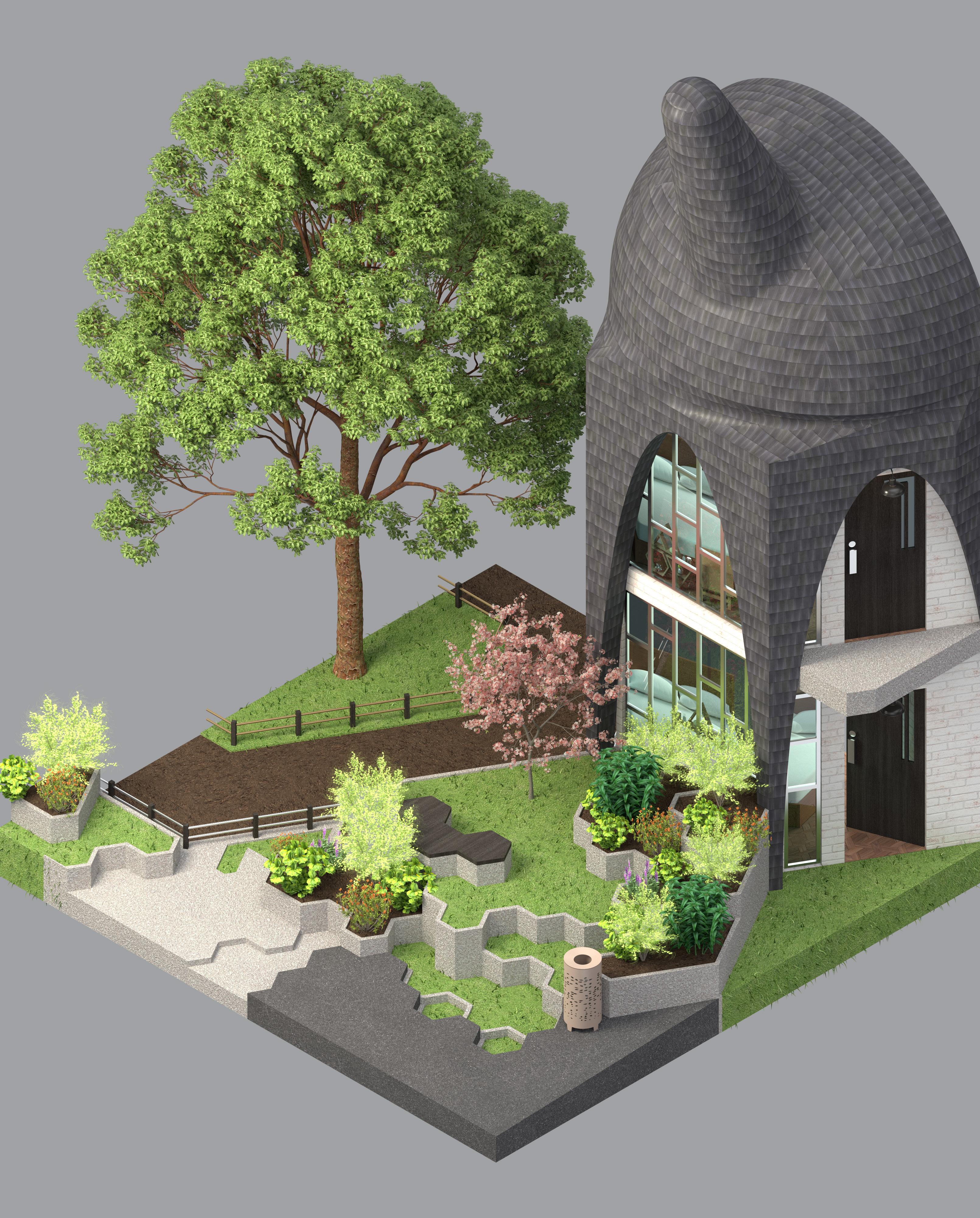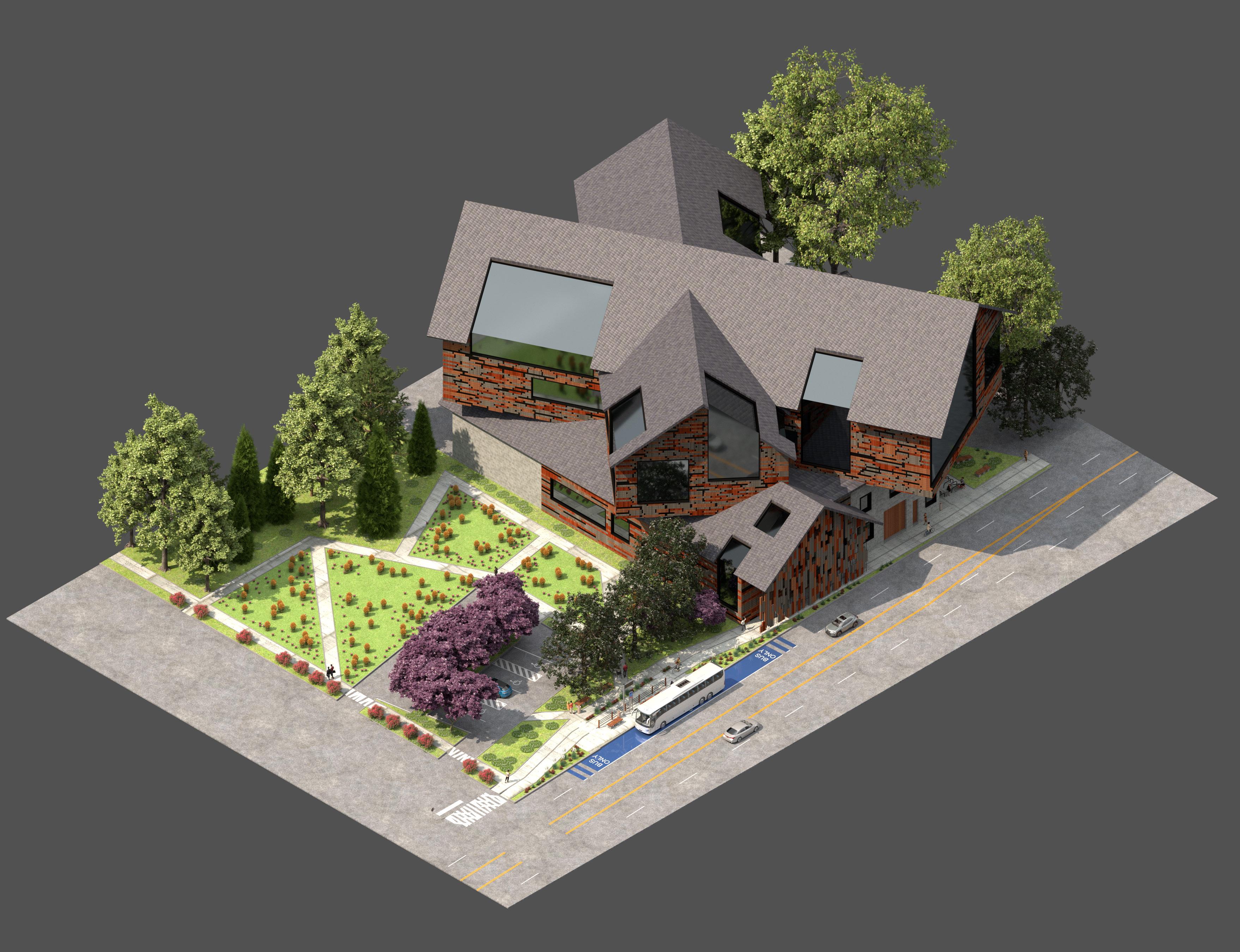 The studio designed a new building in the North Hill neighborhood in Akron which, once a year, would turn into a festival. In order to accomplish this programmatic shift as well as capture the public imagination, the studio used video games and art direction in order to explore various forms of architectural detailing.