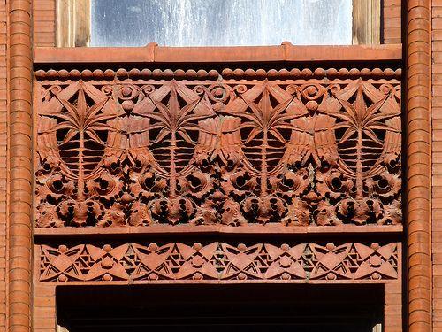 Sullivan never publicly “came out” per say, yet it can be inferred from his own writings and those of other architects of the time, particularly those of Frank Lloyd Wright, that Sullivan had a bit more pep in his step than the average straight man. In his autobiography, Sullivan starts out by recounting a story from his childhood in which he constructed a dam in a small creek. Many historians read this excerpt and focus on his attention to power, something ever present in his work, highlighting when child power and water power clash and how that affects the environment and nature of the water. However I think there is something even more interesting to note, and that is his word choice when recounting this story As the water stops he describes the situation as “the grand climax – the meaning of all this toil… With all his strength he tore out the upper center of the wall, stepped back quickly and screamed with delight, as the torrent started, and, with one great roar, tore though in a huge flood, leaving his dam a wreck… He laughed and screamed… Wasn’t he a strong boy for his age?”[2] . There is undoubtedly a certain subtext present in all of Sullivan's writing, one borderline erotic in nature and at times flat out sexual The climax of the flood, liquid pouring out leaving something a wreck, screams of joy. One may wish to take a shower after reading any of Sullivan’s work. This can be extended to his architecture as well, in particular the ornament of Sullivan takes on borderline perverse qualities that both promote a queer space to be formed as well as create a uniquely culturally queer piece.