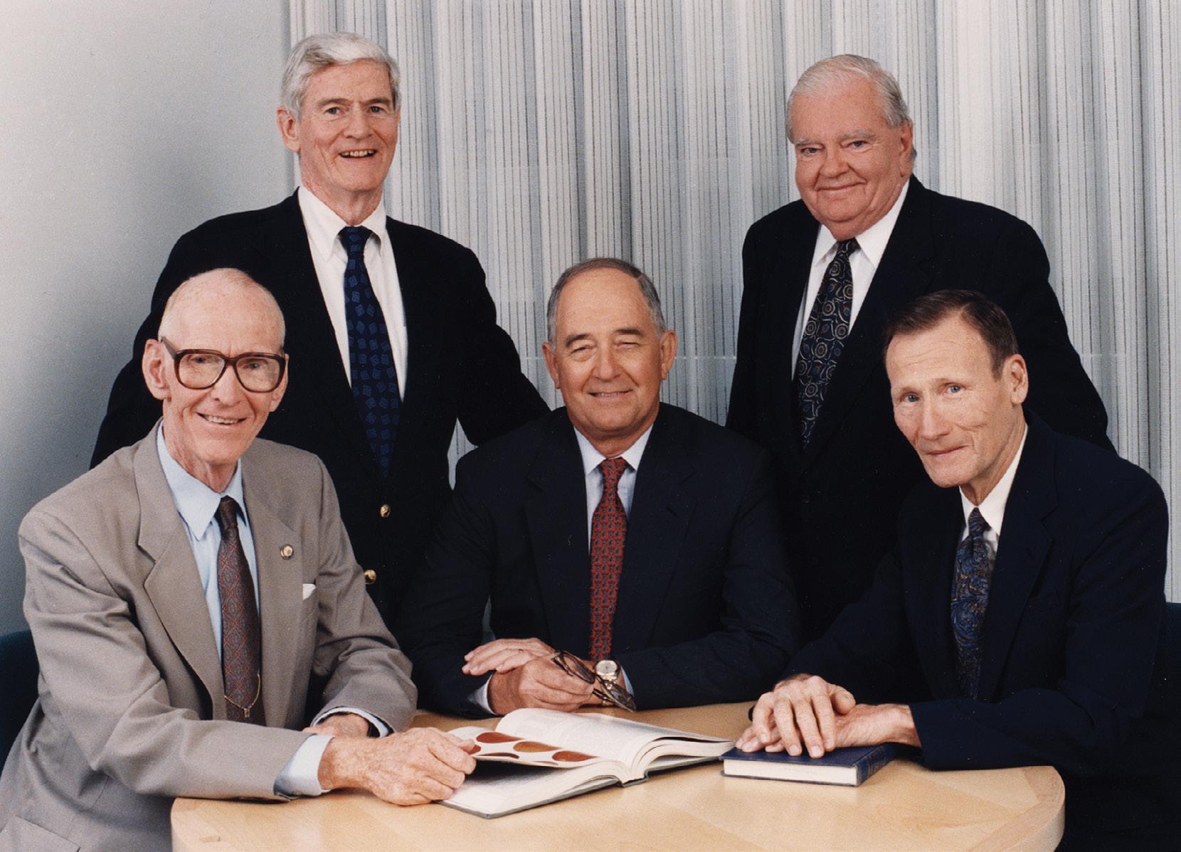 The founding five ophthalmologists were (left to right) Lawton Smith, M.D., John Flynn, M.D., Donald Gass, M.D., Edward Norton, M.D., and Victor Curtin, M.D.