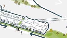 The Library and the Tech hub have an open ground level that respons to the park - by means of book sharing and co-working that are completely accessible. In addition, the cycle lane cuts through the floors above creating interaction spaces like book lending, conference spaces etc