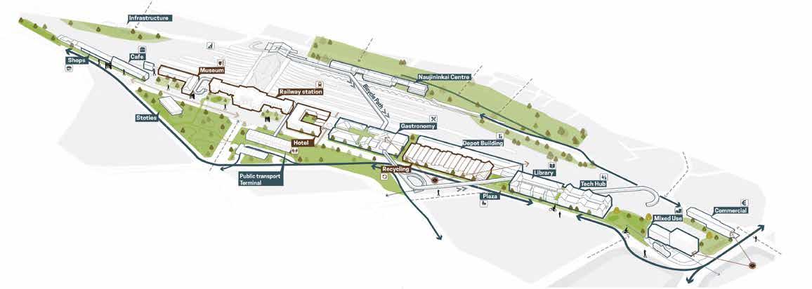An open plaza is created near the Depot building that serves as an access to the Library, Recycle hub and Second hand stores