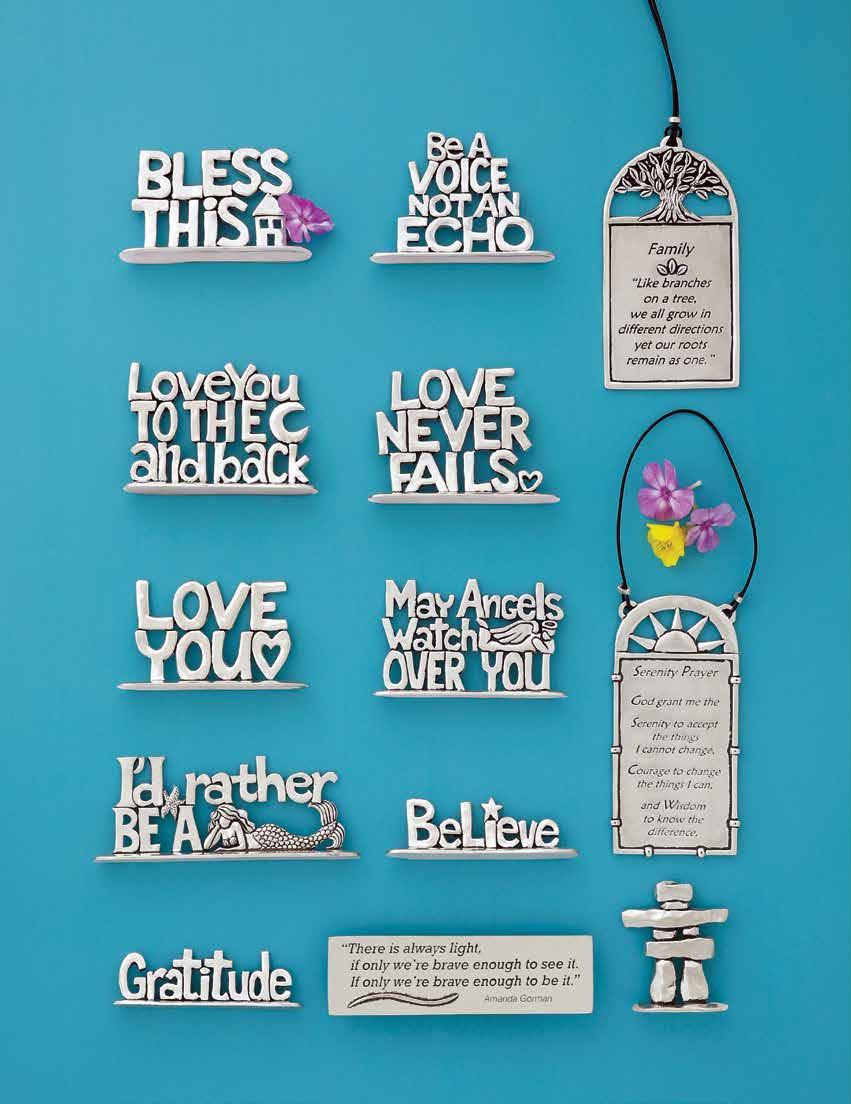 JBA-59 Be Bold, Be Grateful, Be Yourself JBA-60 Giggle, Hug more JBA-61 Faith, Family, Friends JBA-63 Love, Hope, Imagine, Dream, Peace JBA-69 Travel Light • Live Light • Be the Light • Spread the Light JBA-70 Let your smile change the world JBA-71 going that way