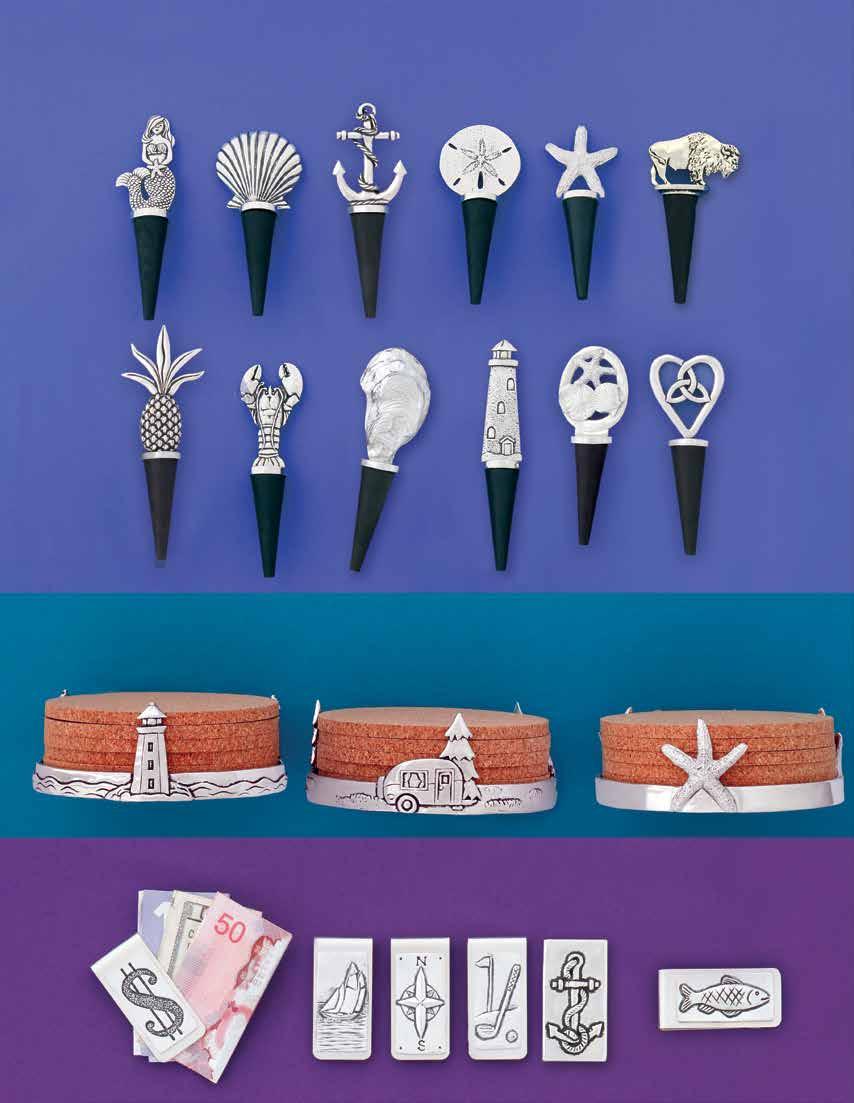 ST-13 Shell ST-35 ST-38 Sanddollar ST-61 Mermaid ST-14 Lighthouse ST-57 Lobster ST-92 Buffalo ST-73 Anchor ST-80 Pineapple ST-81 Oyster ST-83 Shells CS-21 Lighthouse CS-20 Camper Bottle Stoppers MC-12 Schooner Money Clips ST-93 Celtic Coasters MC-9 Compass MC-5 Golf MC-13 Anchor MC-1 Fish MC-2 Dollar sign 33