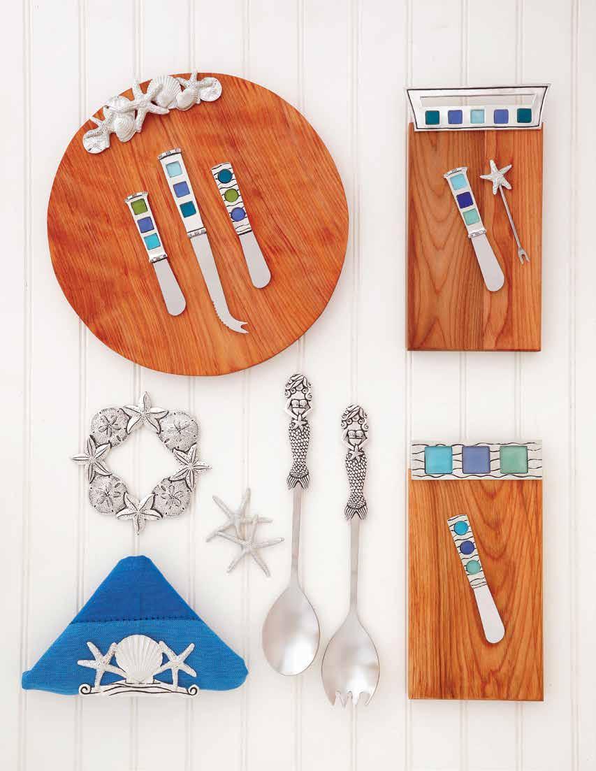 Shells & Seaglass TL-19 Starfish Tealight SD-41 Shell Salt Cellar NR-14 Shell NR-10 Starfish NR-15 Sanddollar NR-16 Spiral NR-17 Seaside Napkin Ring Set (includes one of each of the above) CB-60 Lg. Shell Board ST-96 Seastar SS-20 Starfish Salad Servers (stainless bowl & tines) SS-18 Mermaid Salad Servers PTS-59 PTS-61 SP-190 Mermaid Spoon CB-122 Shells Mini Board CBP-122 Board w/ shells paté knife PTS-1 Shells Paté Knife PTS-22 Mermaid Paté Knife SP-122 Starfish Cheese Knife Wood Only: 15”h x 8.75”w 41