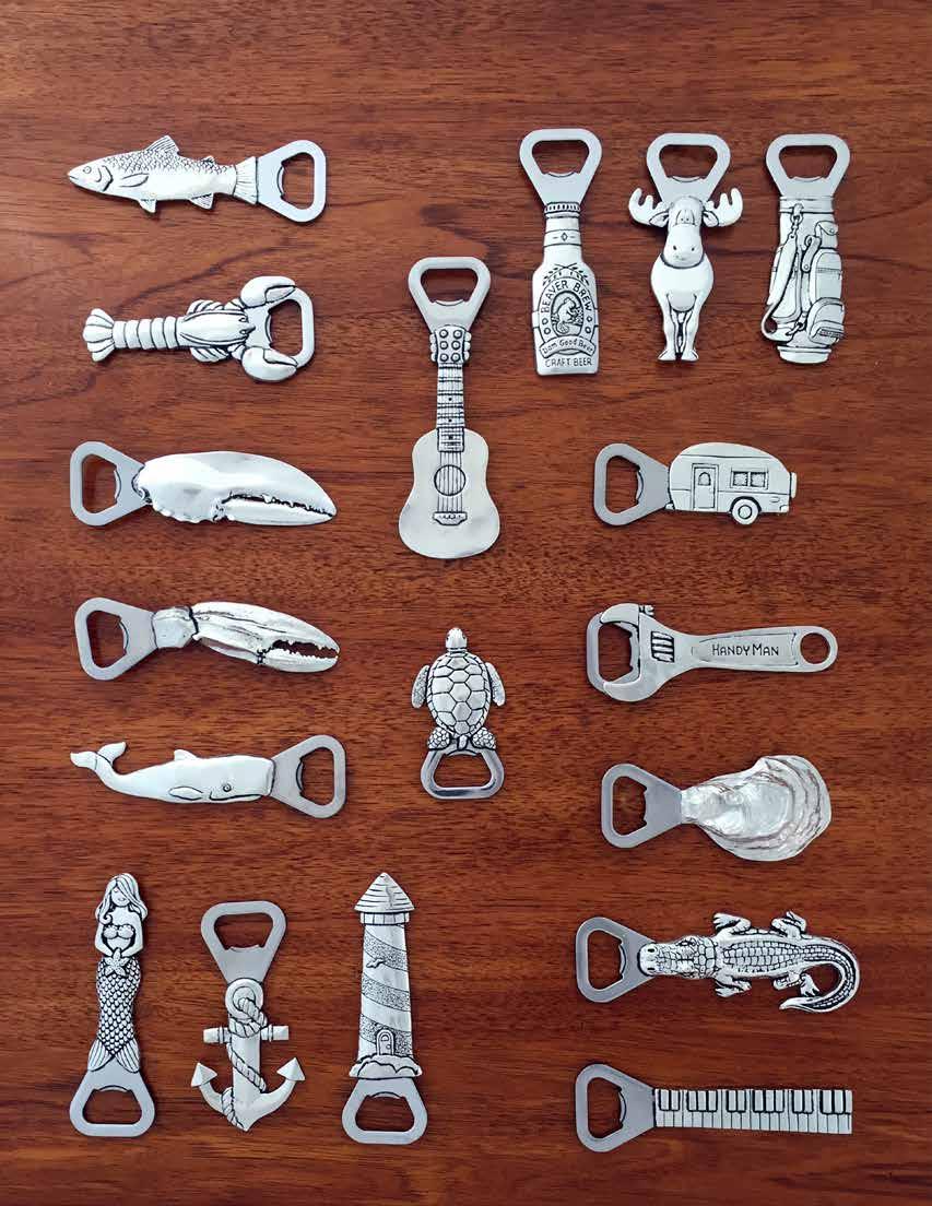 BO-10 Golf Bag BO-13 Moose BO-1 Fish BO-11 Lighthouse BO-36 Anchor BO-2 Mermaid BO-7 Lobster Claw BO-22 Alligator BO-27 Lobster BO-35 Sea Turtle BO-45 Camper BO-46 Guitar BO-28 Wrench BO-34 Oyster Shell BO-40 Keyboard BO-39 Whale Bottle Openers BO-43 Beer Bottle BO-24 Crab Claw 30