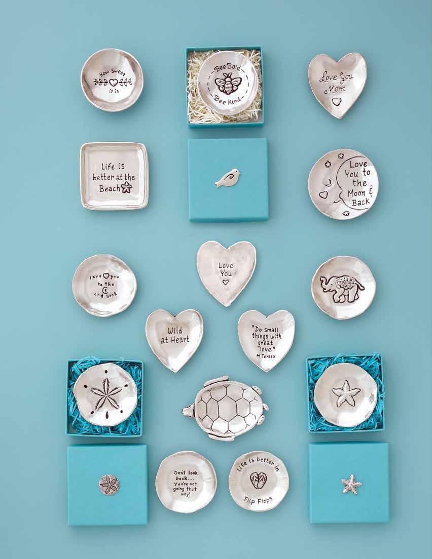 Large Charm Bowls- w Design box BWL-101 How Sweet BWL-44 Love you Mom BWL-24 BWL-43 Moon Love You BWL-46 Elephant BWL-7 Love you to the Moon BWL-11 Sanddollar BWL-31 Beach BWL-27 BWL-40 Wild at Heart *BWL-49 Love You Bowls approx 2.5”. BWL-23 Turtle *BWL-47 Bee Bold BWL-37 Do Small Things BWL-36 Flip Flops 5