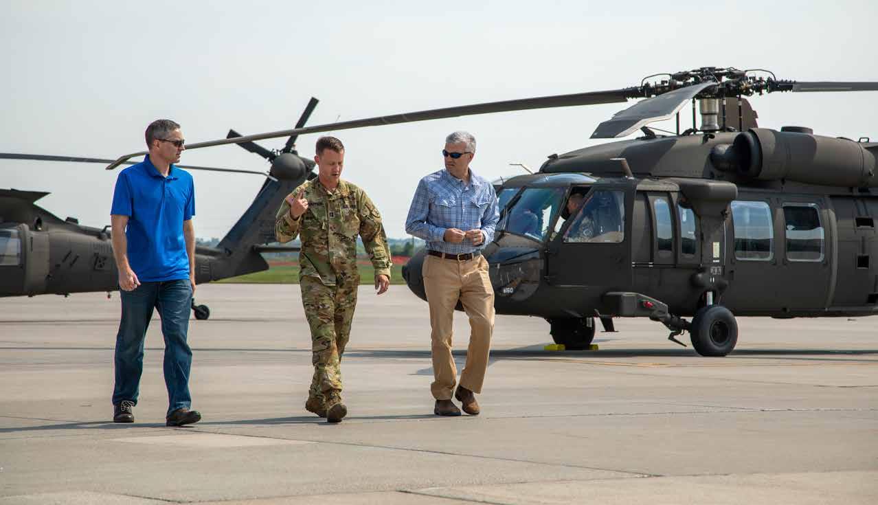 Mark Scheele, Basin Electric chief pilot; Steven Schaffner, Basin Electric senior pilot and member of the National Guard; and Todd Brickhouse, Basin Electric CEO and general manager, attended the Employer Support of the Guard and Reserve 'Lunch with the Boss' event in support of those who serve in the National Guard and Reserve.