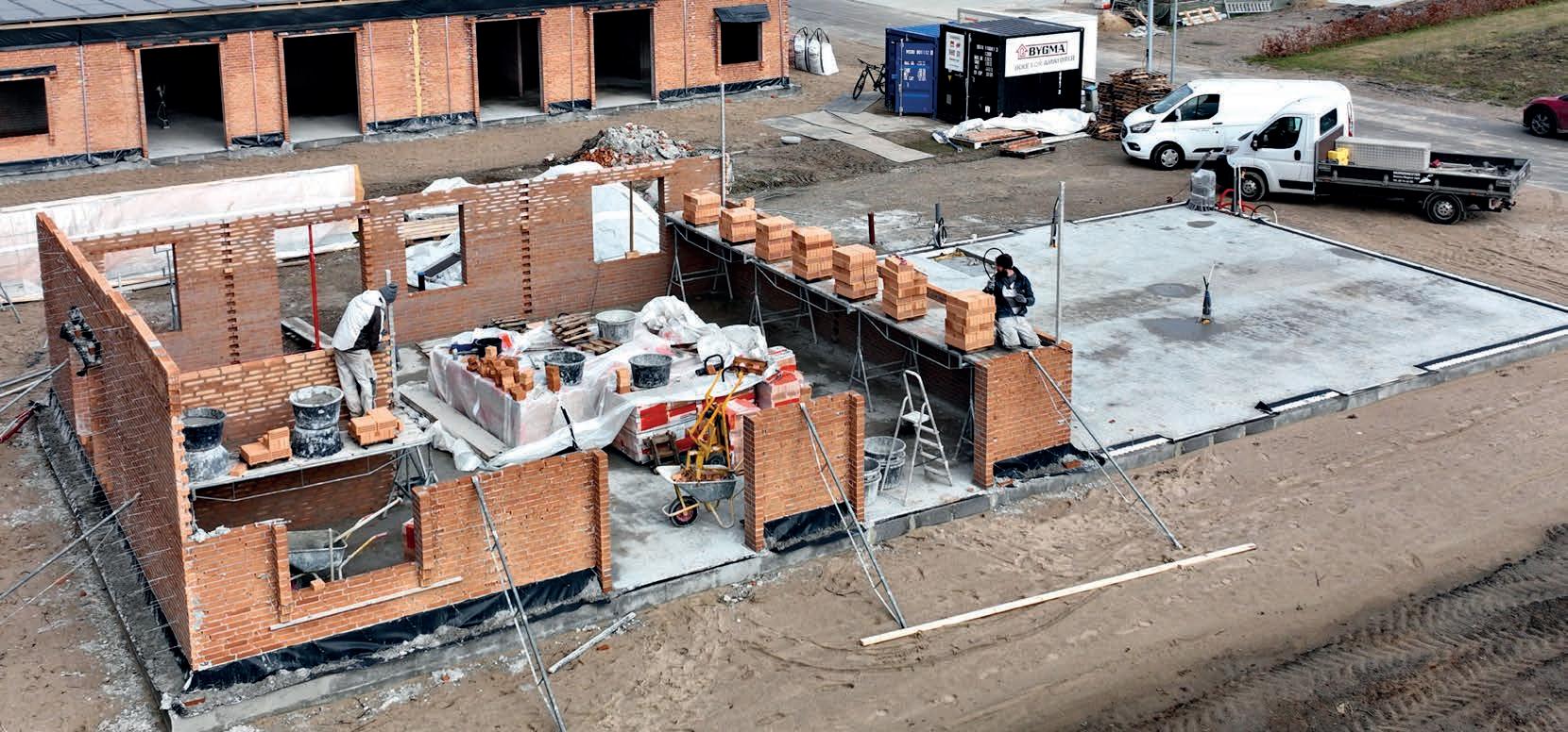 Dennis’ svend gennem 4 år, Benneth, som Dennis selv var med til at udlære hos sin tidligere mester sammen med Tage Bisgaards søn Kristian, som Dennis lejer ind efter behov. T.v. Et af de grundmurede huse i Dronninglund Dennis Wagners murerfirma har bygget.