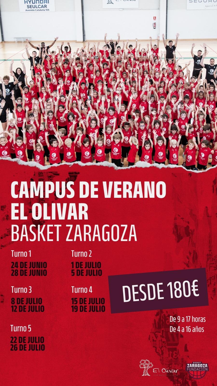 Con motivo de la llegada de las vacaciones de Verano, la Fundación Basket Zaragoza y el EM El Olivar lanzan el ya tradicional Campus Urbano de Verano 2024 que se celebrará en las instalaciones del Estadio Miralbueno-El Olivar La actividad está dirigida para chicos y chicas de 4 a 16 años (nacidos entre 2008 y 2020) disfruten de nuestro deporte en las mejores manos Hay 5 turnos disponibles en horarios de 9 00 a 17 00 horas con opción de madrugadores a las 8.00 de la mañana.