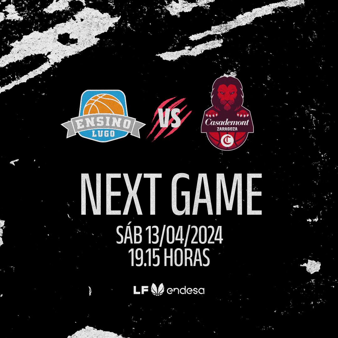 A continuación, en la penúltima jornada de competición, Casademont Zaragoza viajará a Lugo, para enfrentarse a Durán Maquinaría Ensino, uno de sus posibles rivales en cuartos de final de los play-offs La última jornada de competición tendrá lugar en el Príncipe Felipe el próximo 20 de abril frente a Barça CBS