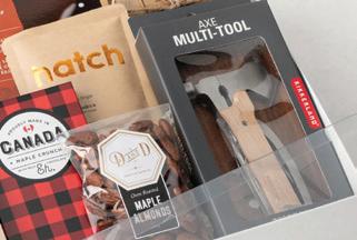 Add customization finishes like logo branded ribbon, cards and mugs to any ready-to-ship gift.