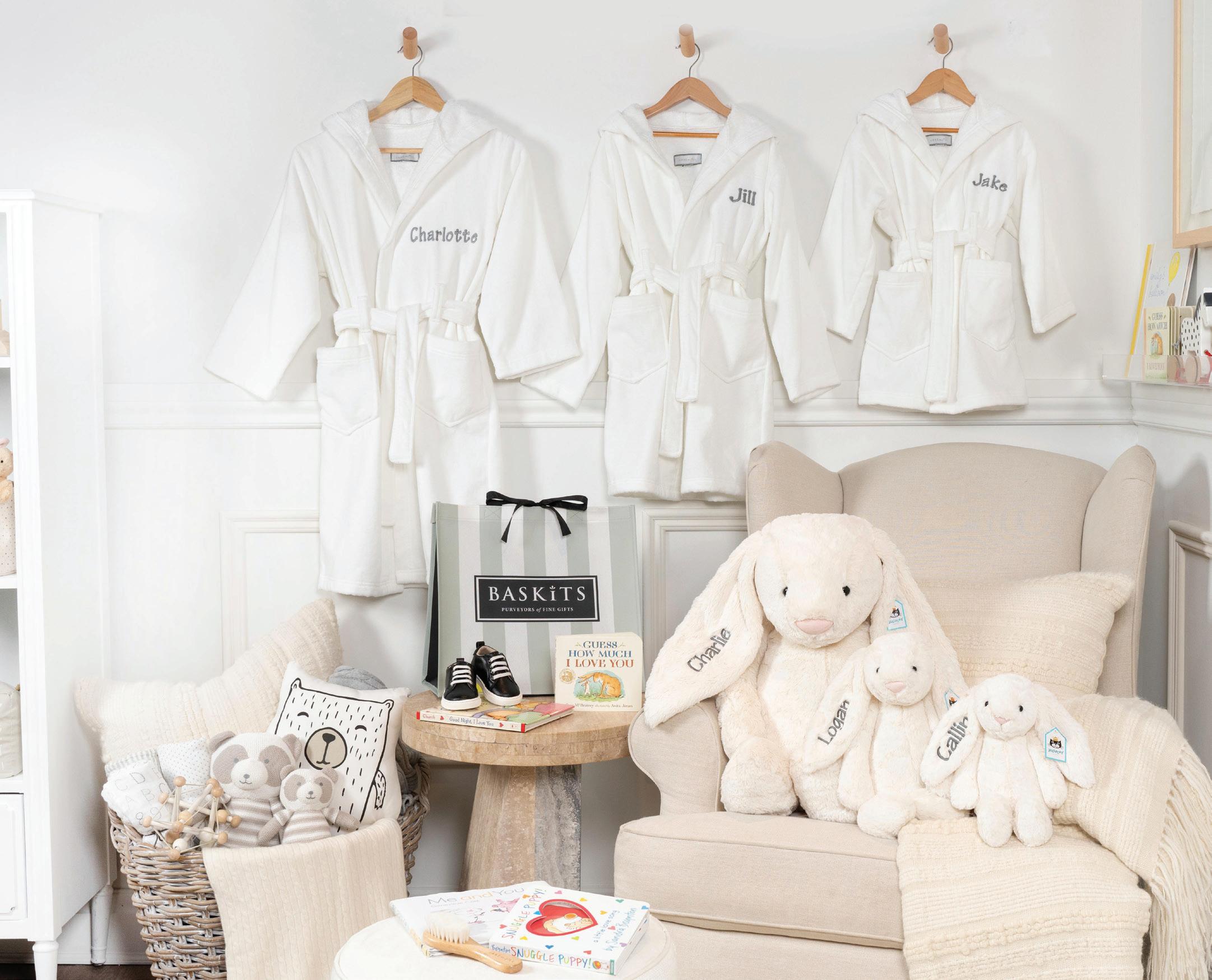As a mom, CEO Robin Kovitz had a vision to create a line of baby products and clothing that were not only useful, but well made and top quality. Taking from her own experience of being a new mom and receiving baby gifts that lacked in quality and babysafe ingredients, she and the Baskits team designed a brand of products that any new parent would be delighted to receive!