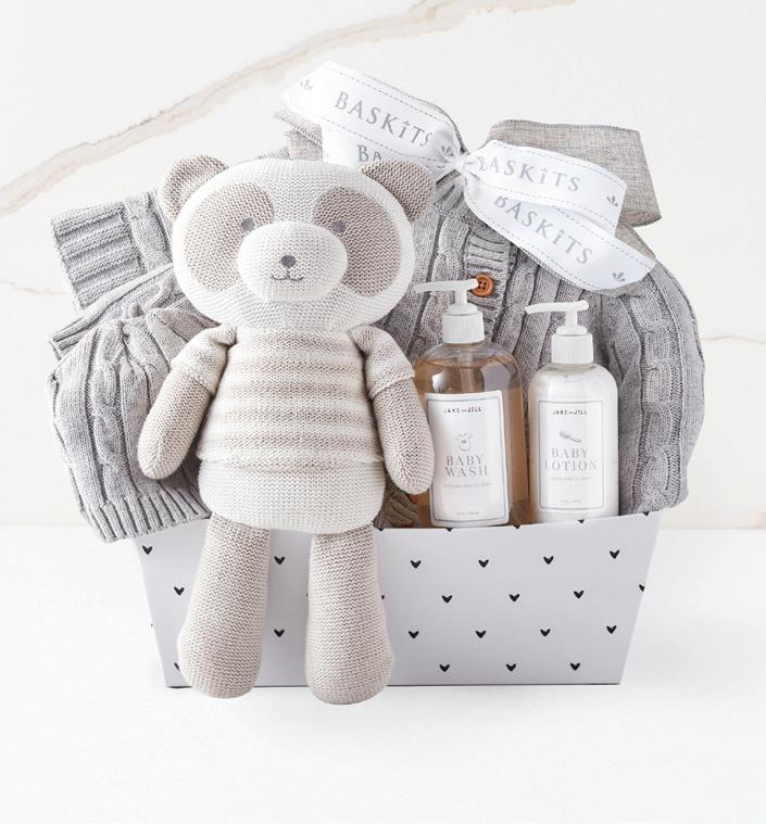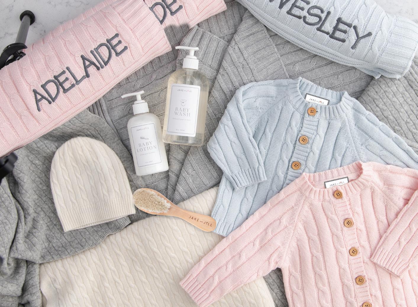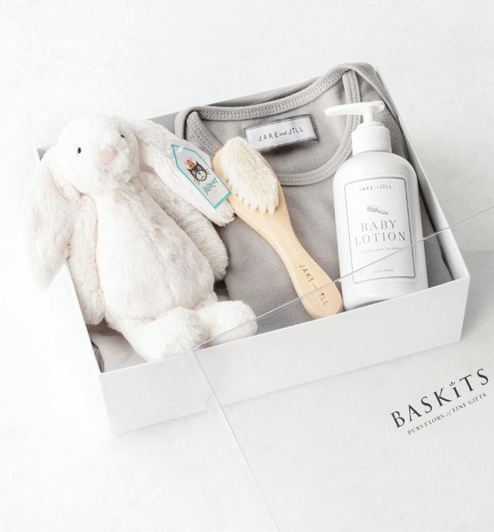 You'll find only baby-safe ingredients in all of our baby skincare products that are gentle on baby's skin and our clothing is made using quality materials like 100% Cotton or 100% Cashmere that are soft and long lasting. Shop our exclusive Jake and Jill baby collection at www.baskits.com and see the difference!