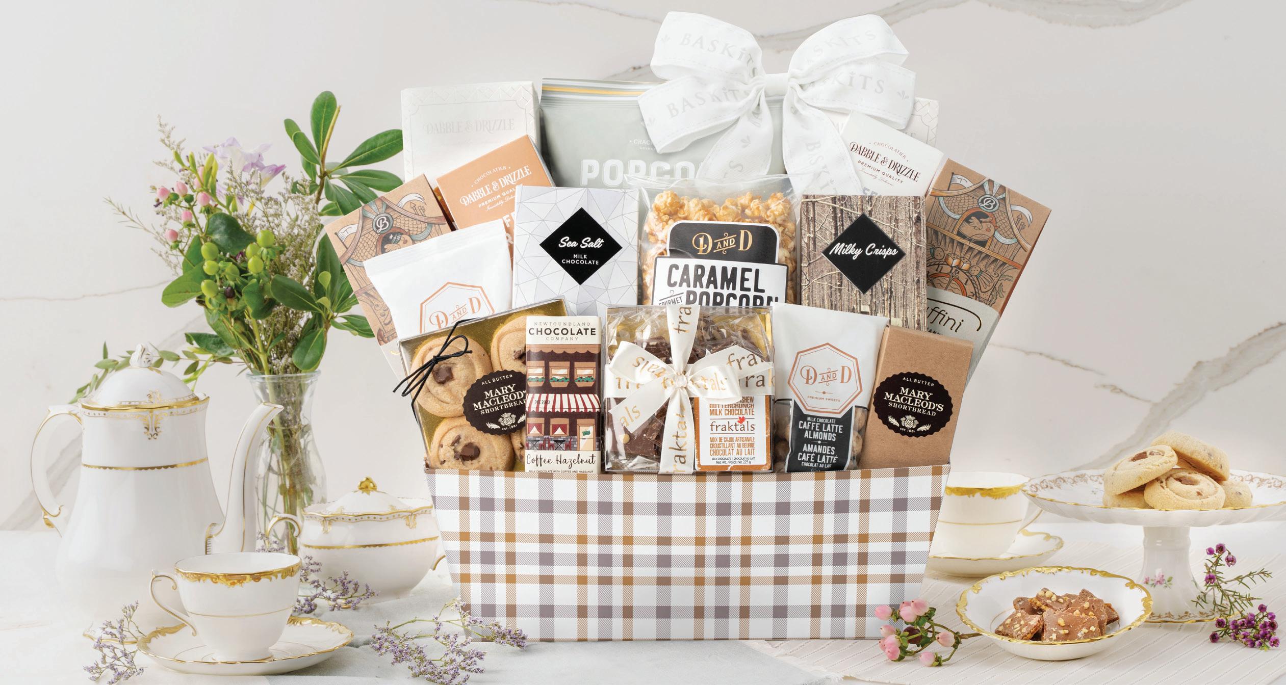 Every gift basket is carefully curated to include the tastiest, most indulgent and highest quality sweets, treats and delicacies that will tickle the taste buds and thrill the senses. We specialize in gourmet products and exclusive brands you just won't find anywhere else! With many options to choose from, you'll find the perfect gift basket to celebrate your next occasion!