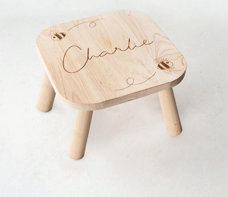 curated and customized all-natural wooden step stool. Stylish design sure to be treasured for many years.