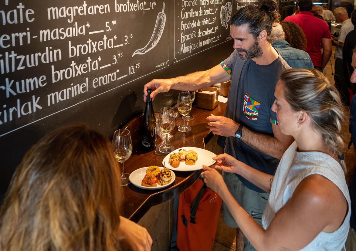 Elles offrent des plats tels que l’omelette à la morue, la morue frite aux poivrons, la côte de bœuf ou le fromage avec de la gelée de coings et des noix, outre leur mise en scène pittoresque au cri de « txotx ! » entre les barriques (kupelas).