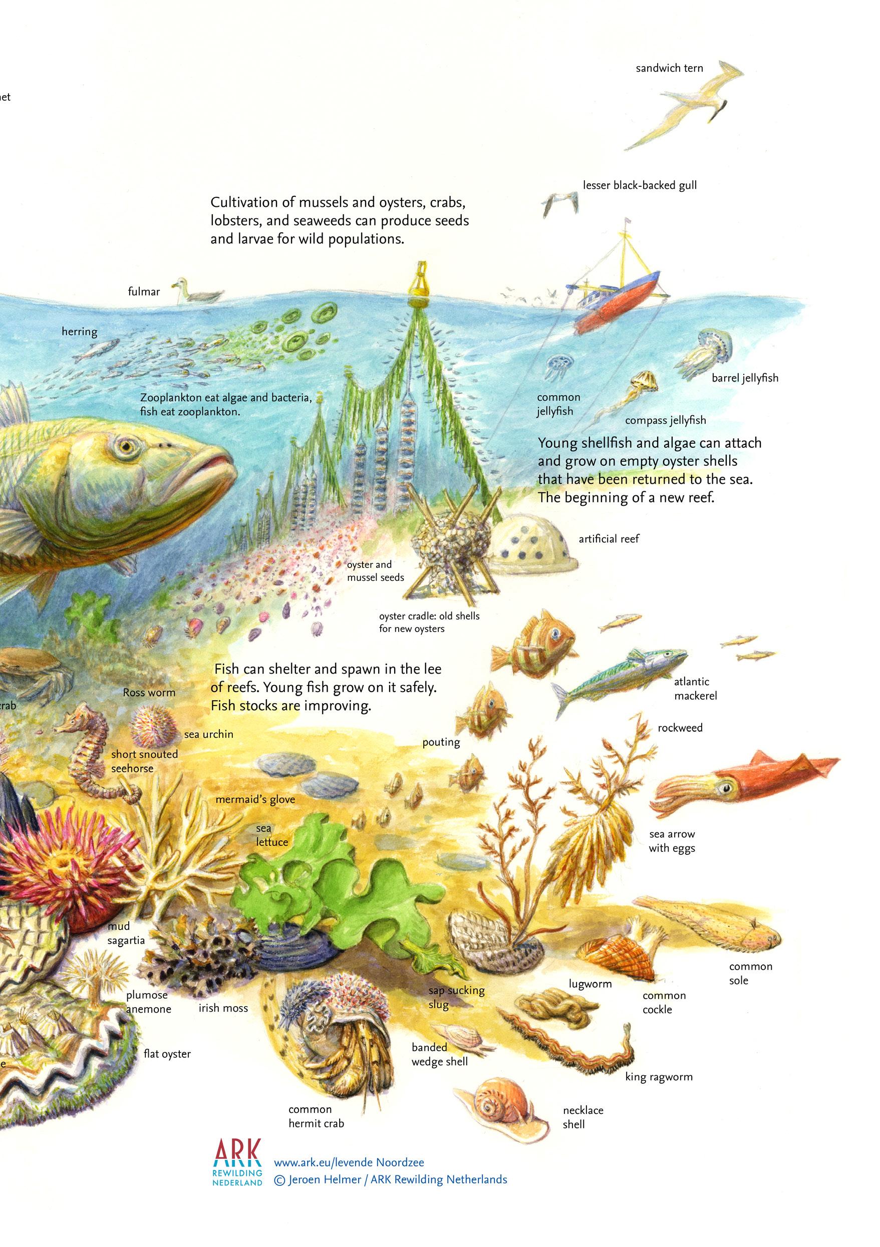 North Sea nature is in a deplorable state currently. It has a huge potential though to regrow a rich and robust, self-healing ecosystem given the right conditions to retstart and rewild. ARK wants to team up with North Sea stakeholders, to share knowledge, kick-start and maintain seawilding measures that’ll help nature to bounce back.