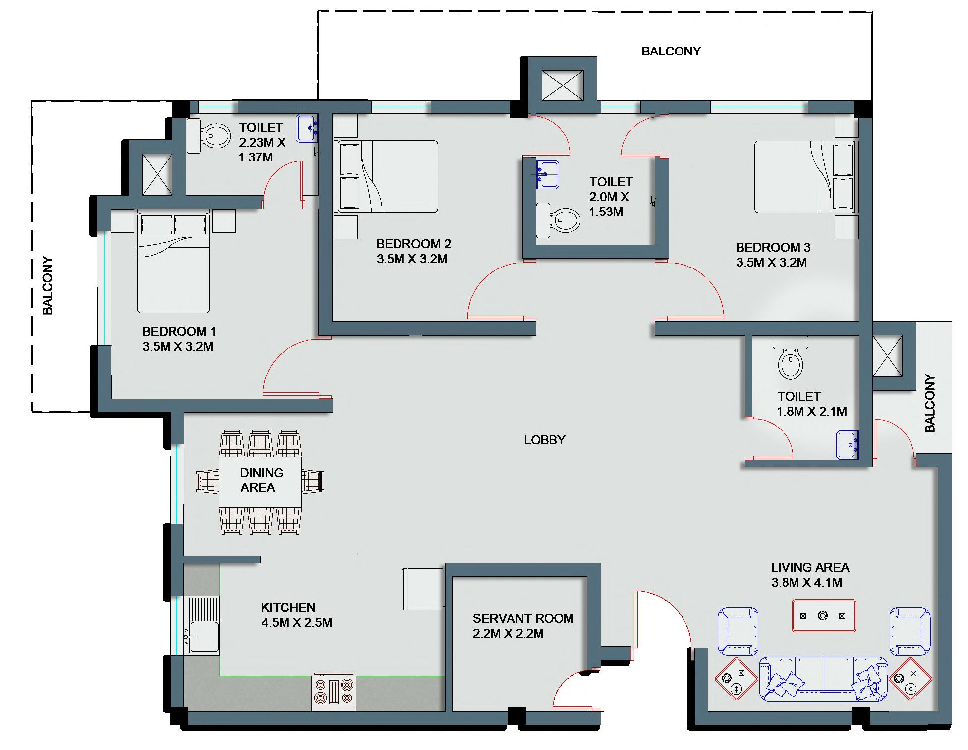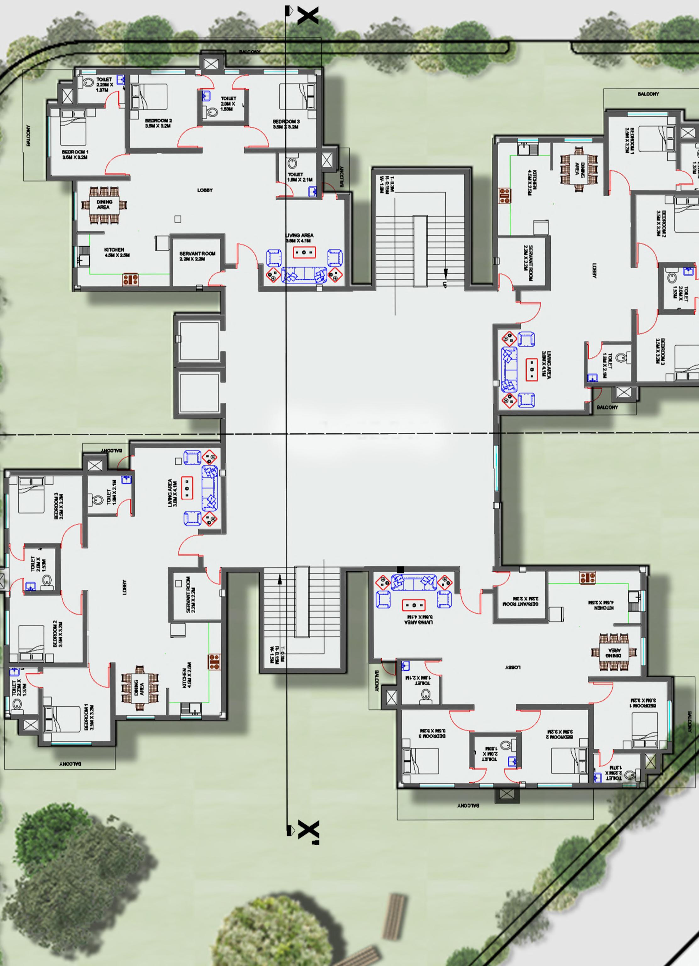 3BHK CLUSTER PLAN 3BHK UNIT PLAN