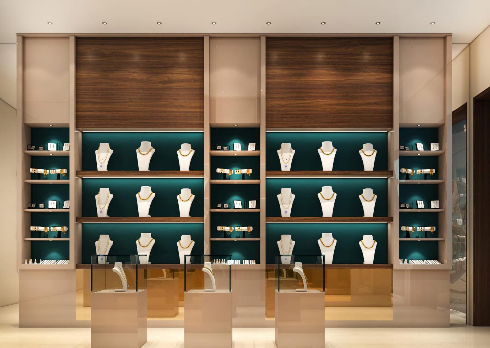 The use of neutral colours along with combination of wood allows the jewellery to pop out and grab attention of the customers.