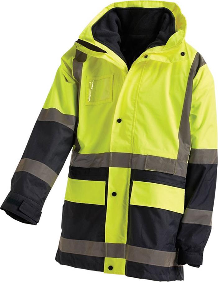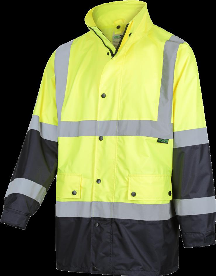 • Contrast coloured ribbed collar with two hi-vis stripes.