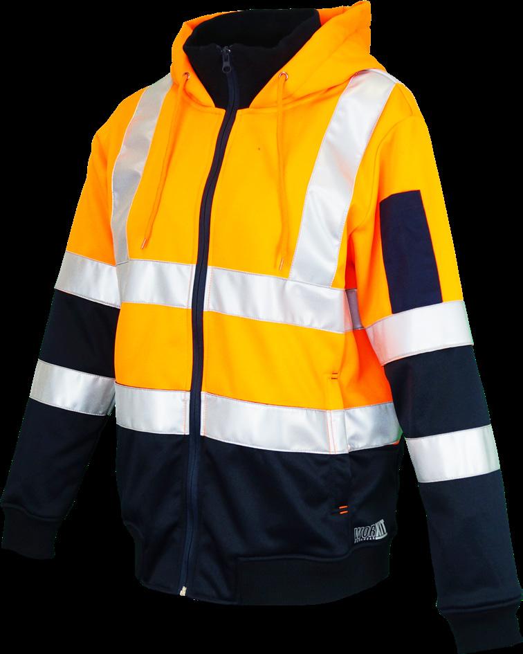 Two piece structured collar. • FR Reflective tape - Hoop pattern. SIZES: COLOURS: TAPE: FABRIC: S - 6XL Orange, Orange/Navy, Yellow/Navy Hoop FLAREX RIPSTOP 50% Modacrylic, 32% Cotton, 9% Polyamide, 8% Polyarylate, 1% Anti-Static 155gsm 2835