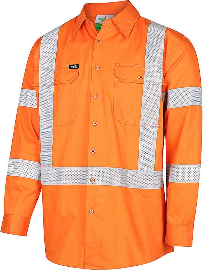 HI-VIS LONG SLEEVE ADJUSTABLE CUFF REFLECTIVE TAPE VENTED MESH