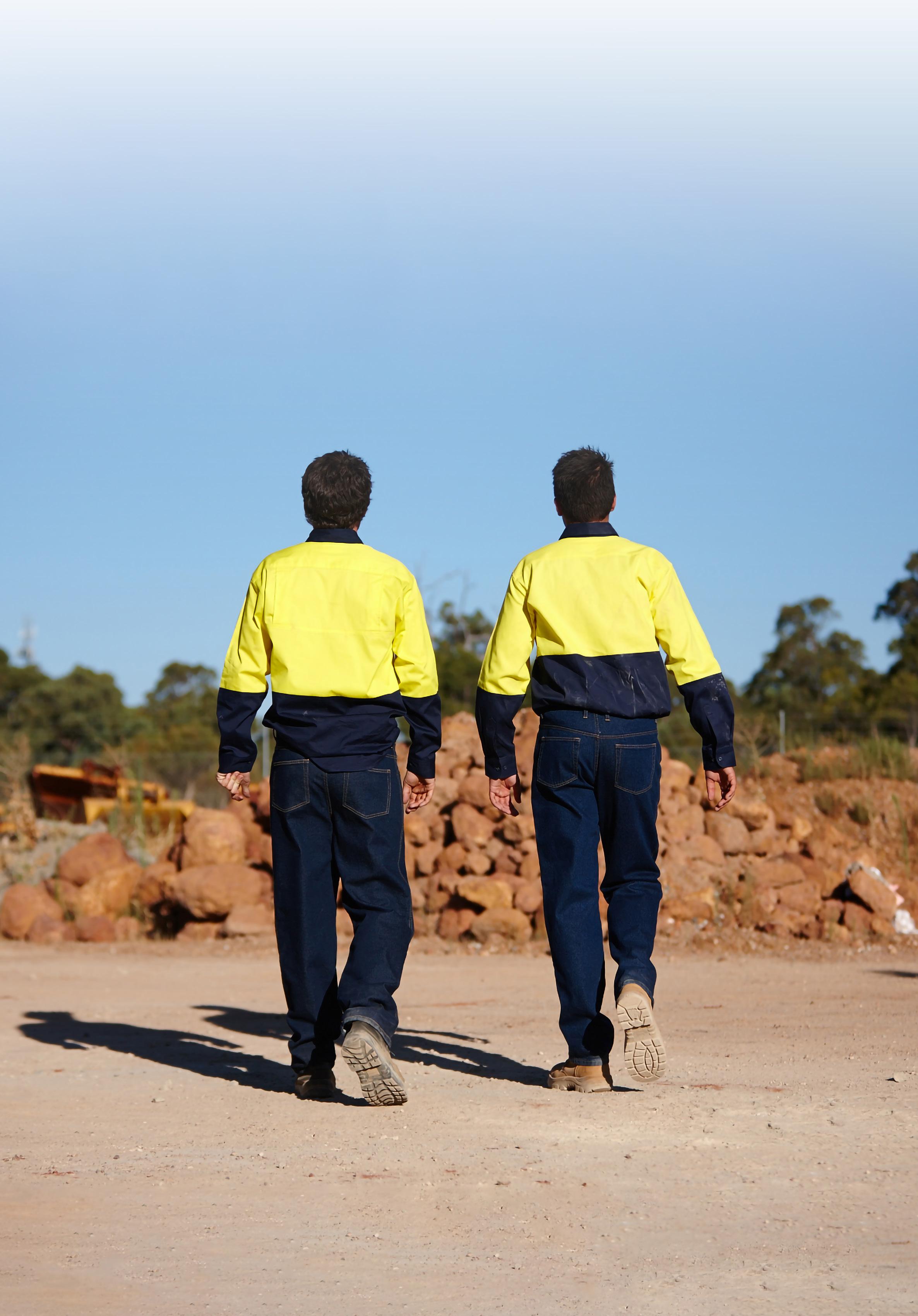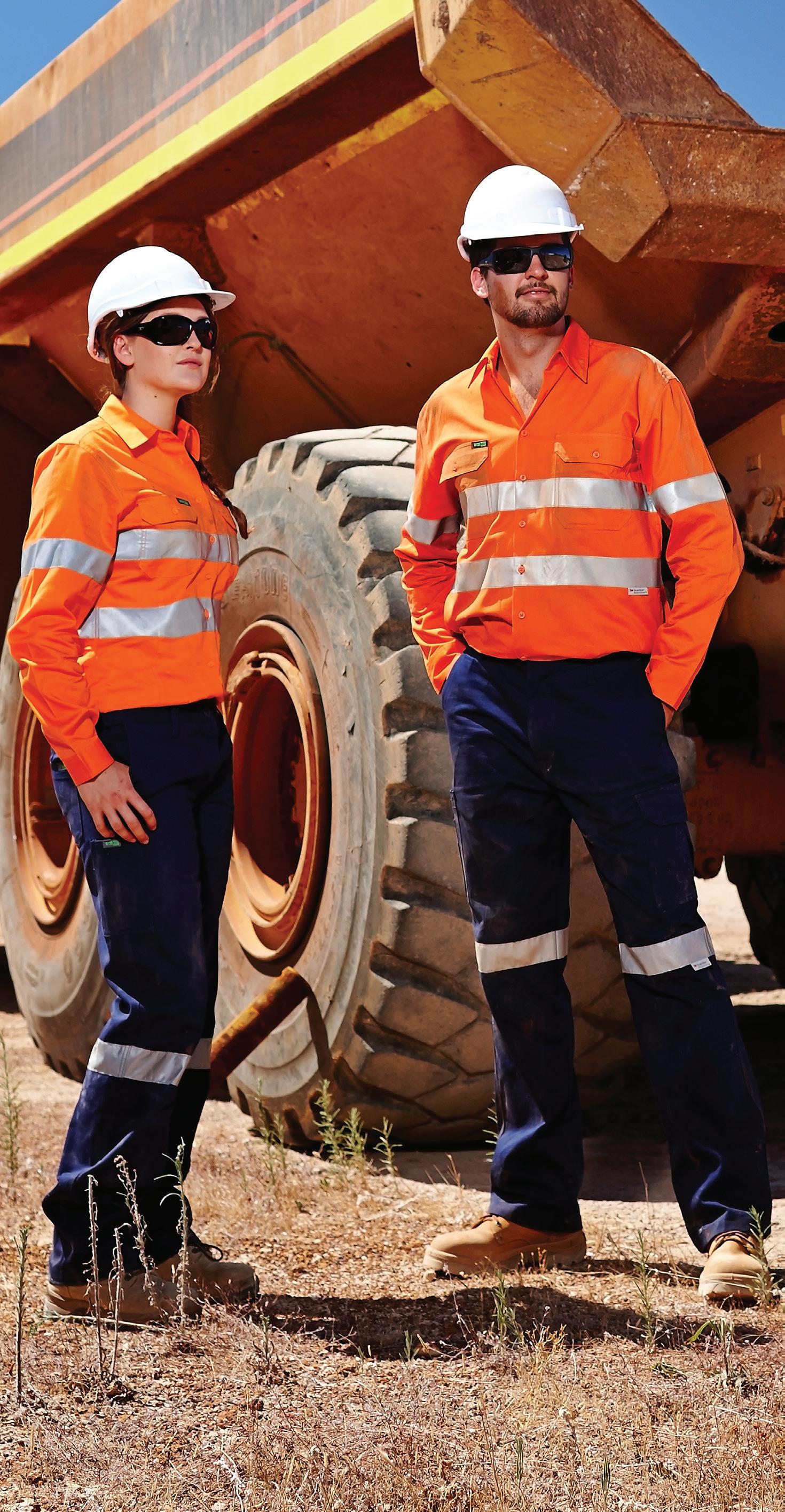 featuring this icon are made with lighter weight fabric to keep you cool and comfortable. Garments featuring this icon have characteristics that increases the garment durability. Garments featuring this icon have strategically placed COOLKIT ventings in the underarms and on the back to keep you cool and comfortable. Garments featuring this icon meets the Australian Standard AS/NZS 2001.2.18: 1987 which requires that fabrics, under set conditions, will not allow water to pass through it over an 18 hour period. Core styles that have been designed to suit female body shapes with thoughtful panelling, extra shape and engineered cut lengths. The fabric used in this was tested and rated 50+ UPF Sun Protection in accordance with the Standard AS/NZS 4399: 1999 Sun Protective ClothingEvaluation and Classification. Designed for general welding operations. Providing protection at the front of the garment, with added temperature control and venting at the back. Fabrics with this icon have stretch properties, providing extra mobility to the user. Ripstop fabrics are woven fabrics, that use a special reinforcing technique making them more resistant to tearing and ripping. Preshrunk fabrics are items of clothing that have already been washed, or “compacted,” so additional washings will not shrink the garment. Fully compliant, increased visibility workwear for use in and around Australian Rail operations, reducing worker accidents and injury risks. Cold weather protective clothing keeps you safe and able to do your job during the Winter. Garments featuring this icon meet the AS/NZS 4602.1:2011 High-Visibility Safety Garments for Night use. Garments featuring this icon meet the AS/NZS 4602.1:2011 High-Visibility Safety Garments for Day/Night use. Garments featuring this icon meet the AS/NZS 4602.1:2011 High-Visibility Safety Garments for Day use. Garments featuring this icon are made of breathable fabric, keeping you cool no matter the temperature. Acceptable fabric composition as listed in AS/NZS 1020: 1995 The control of offensive static electricity. The garment will not create static electricity when worn. Products featuring this icon were tested in credentialed laboratories and passed all the testsagainst flash fire required by the NFPA 2112. Products featuring this icon meet the requirements for arc flash hazard risk category specified by the NFPA 70E. APPROVED NFPA 2112 ANTI-STATIC BREATHABLE CLASS D CLASS D/N CLASS N COLD PROTECTION COOLKIT DURABILITY LIGHTWEIGHT OEKO-TEX PRESHRUNK RAIL RIPSTOP STRETCH SUN PROTECTION WATER PROOFING WELDERS WOMENS SPECIFIC CONTENTS 08 24 38 42 46 52 58 72 86 91 92 SHIRTS PANTS SHORTS CUT RESISTANT WOMENS COVERALLS COLD & WET FLAME RESISTANT VESTS ACCESSORIES SIZING CHART