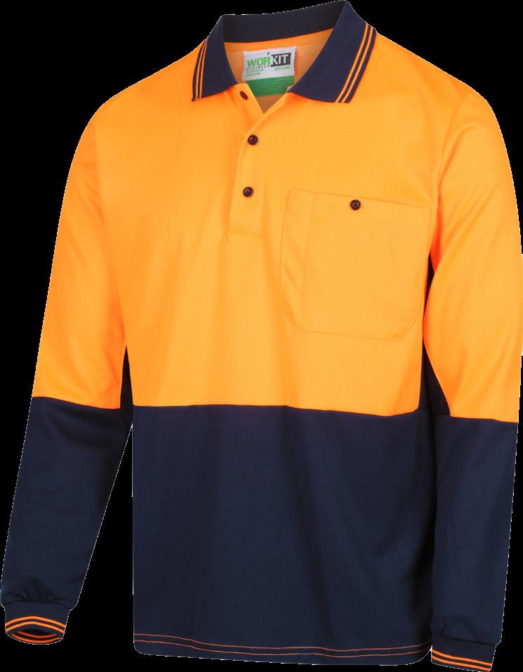 HI-VIS 2-TONE LONG SLEEVE POLY/COTTON TAPED POLO SHIRT