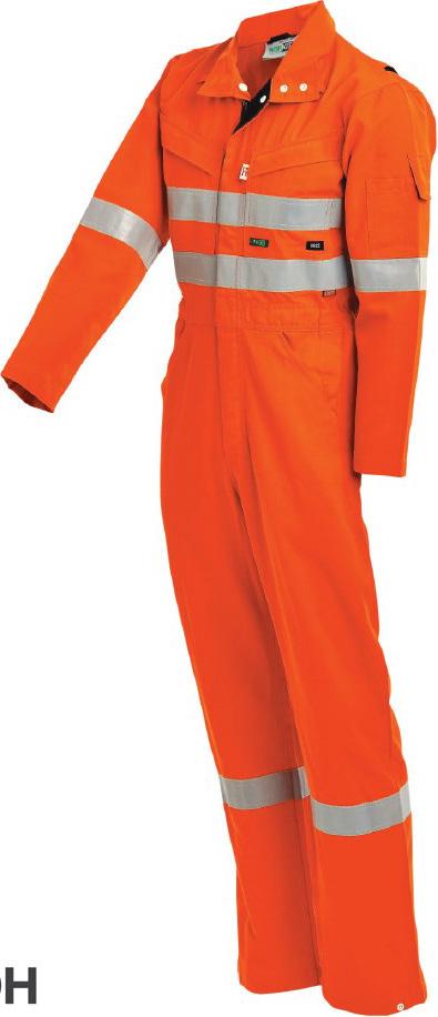 Reflective tape - hoop pattern around the body with additional loop on legs. SIZES: COLOURS: TAPE: FABRIC: Regular (77 - 132) Stout (87 - 132) Long (79 - 94) Orange, Orange/Navy, Yellow/Navy Hoop FLAREX 60% Modacrylic, 34% Cotton 5%, Aramid, 1% Anti-Static, FR Cotton Modacrylic 200gsm Knit Venting 4621 FLAREX PPE1 FR INHERENT 190GSM VENTED TAPED COVERALL • Nylon zip front closure with metal button flap. • Full gusset sleeve cuff with metal stud closure. • Twin inclined zip pockets on chest and two front angled pockets, with two patch pockets on the back, and an additional tool pocket. • Cargo pocket multi use in LHS leg. • Two navy ventilated FR mesh back pleats and underarm mesh. • Tab for radio on both chests and elastic on the sides of the waistband for a better fit. • Reflective tape - hoop pattern around the body with additional loop on legs. SIZES: COLOURS: TAPE: FABRIC: Orange: Regular (77 - 132) Stout (87 - 132), Long (79 - 94) Red: Regular (77 - 117) Orange, Red Hoop FLAREX 60% Modacrylic 34% Cotton, 5% Aramid, 1% Anti-Static 190gsm 4701