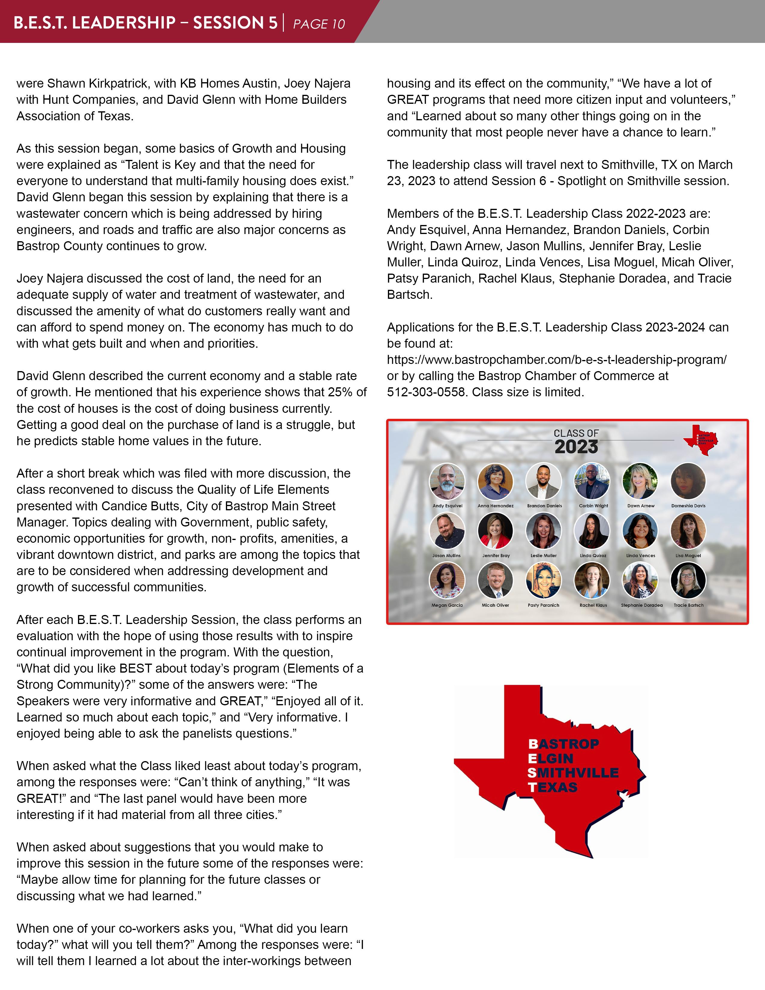 Bastrop Chamber of Commerce 2023 March Newsletter
