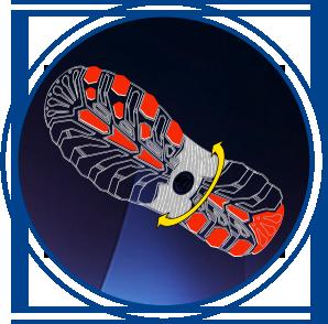 - Estabilizador antitorsión de TPU en el arco del pie, mejora la estabilidad y reduce la fatiga.