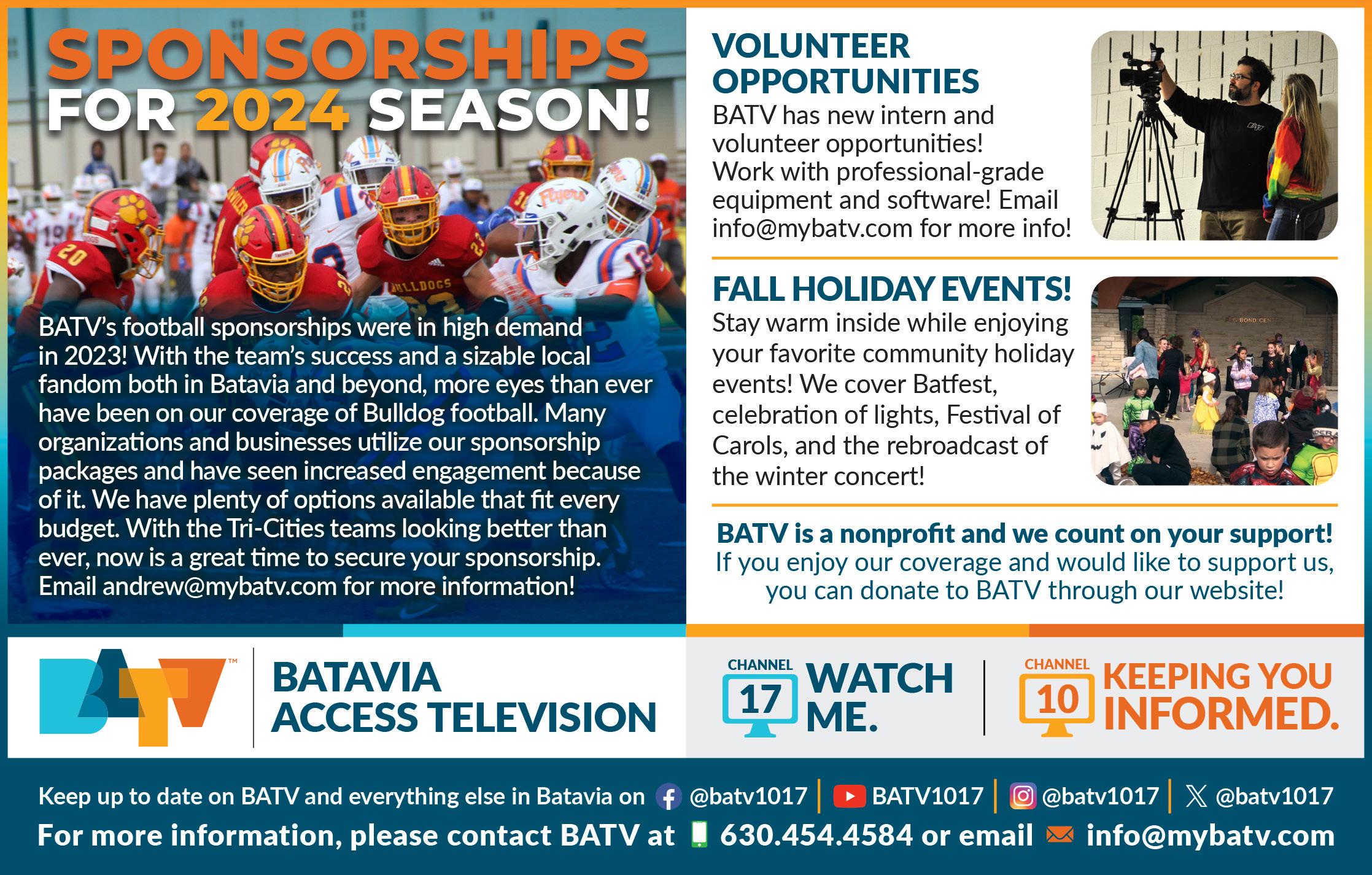The Batavia Park District staff makes every effort to prepare our Fun Guides as accurately as possible. Due to the large amount of information available in the seasonal guides, errors after publication may occur. We will attempt to keep information on our website as current as possible. We apologize for any errors and thank you for your patience and understanding when these situations arise.
